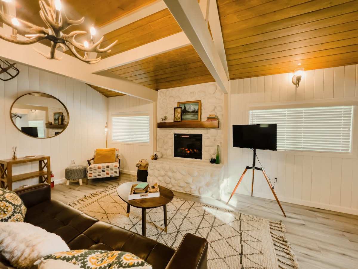 Dobrodošli v hišici na drevesu – udobnem skrivališču, kjer se srečata narava in udobje. Ta 100-letni dragulj ohranja svoj rustikalni čar, hkrati pa se ponaša s sodobnim slogom in premišljenimi detajli. Udobno se namestite ob plinskem ali lesnem kaminu v retro slogu 60. let prejšnjega stoletja in si oglejte film ali pa berite, nato pa stopite ven in opazujte zvezde ob ognju. Zbudite se spočiti za pustolovščino v gozdu, hiter sprehod do jezera in vso gorsko čarovnijo, ki vas čaka. *Psi so dobrodošli – največ 2, doplačilo 50 USD