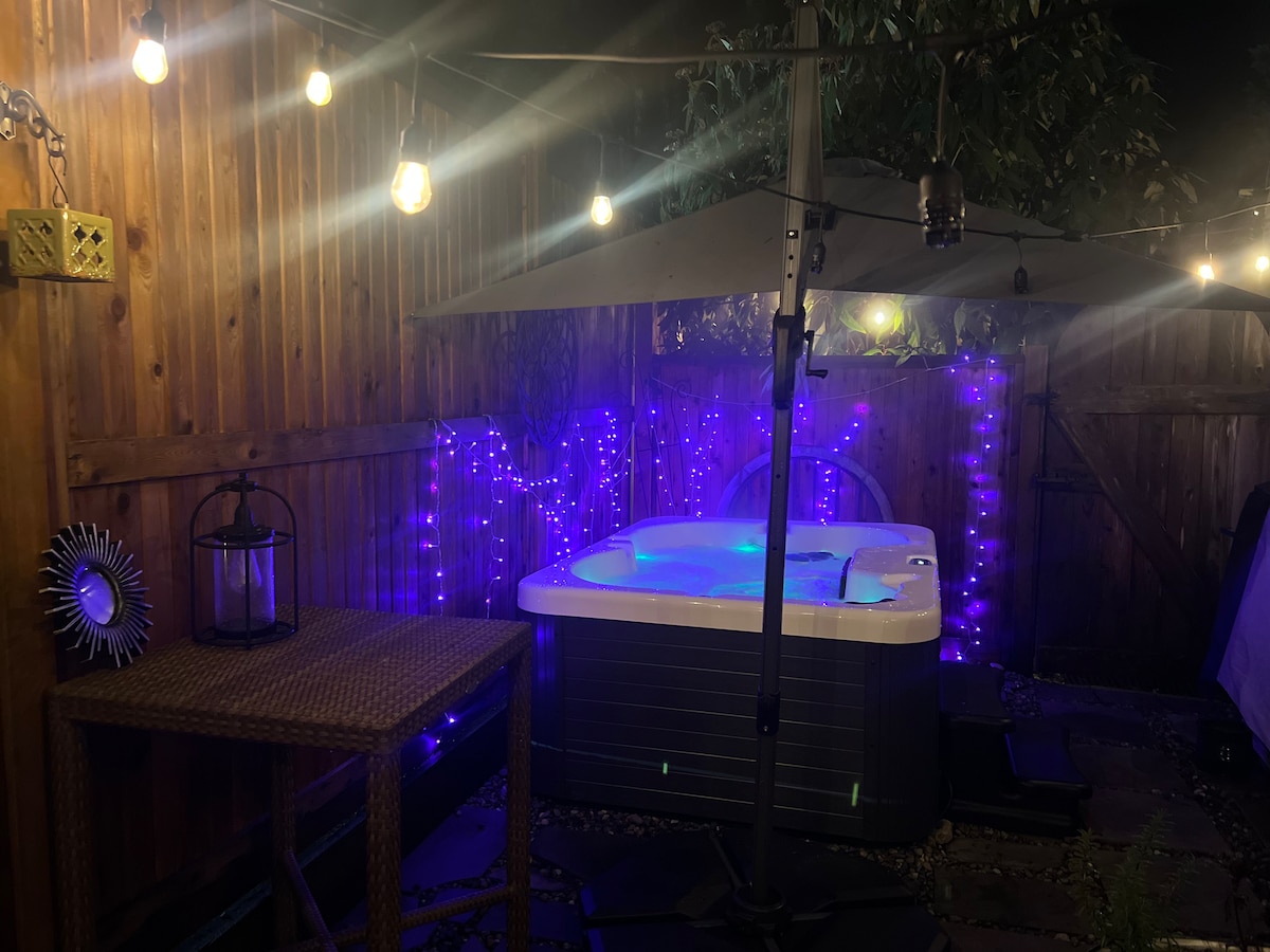 Dobrodošli v našem čudovitem in edinstvenem Airbnbjevem prenočišču. To prenočišče ponuja čudovito elegantno suito z vsem udobjem, ki ga potrebujete za nepozabno bivanje. Stopite ven in izkusite zasebno 2-urno srečanje v naši zunanji nordijski spa oazi, ki vključuje masažno kad s slano vodo, osvežujoč hladen potop in sproščujočo savno, kjer se lahko sprostite in napolnite baterije v slogu. Po uživanju v spa doživetju počivajte v vabljivem salonu z ognjiščem. *Vsaka rezervirana nočitev vključuje 2-urno spa sejo