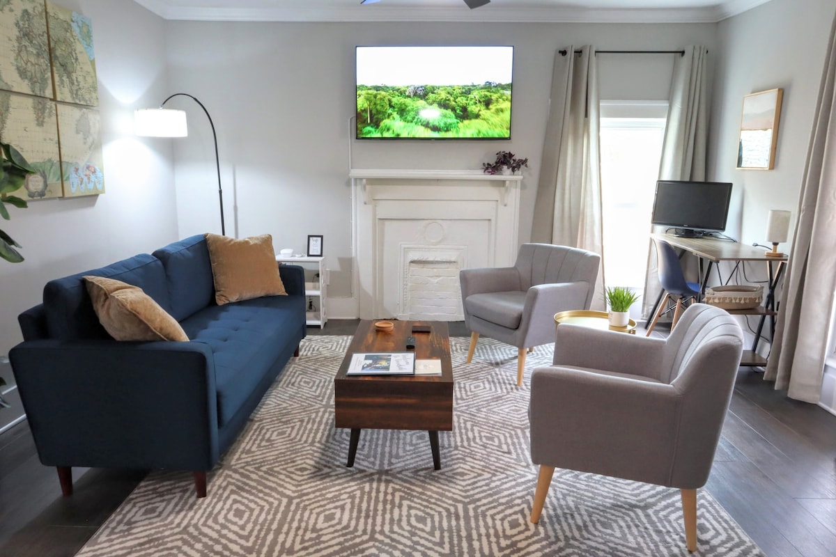 Tucked away just off Augusta Rd near Downtown Greenville, Flora Sanctuary is your custom oasis to relax and recharge. At our home, you are less than 2 miles from I-85 for easy access to all the upstate has to offer. Our home is thoughtfully designed to provide an upscale experience for our guests both inside and out. We are: ~Less than a mile from Greenville Country Club Chanticleer Golf Course ~Less than 5 miles from N Main St and Falls Park ~5 miles from Bon Secours Wellness Arena