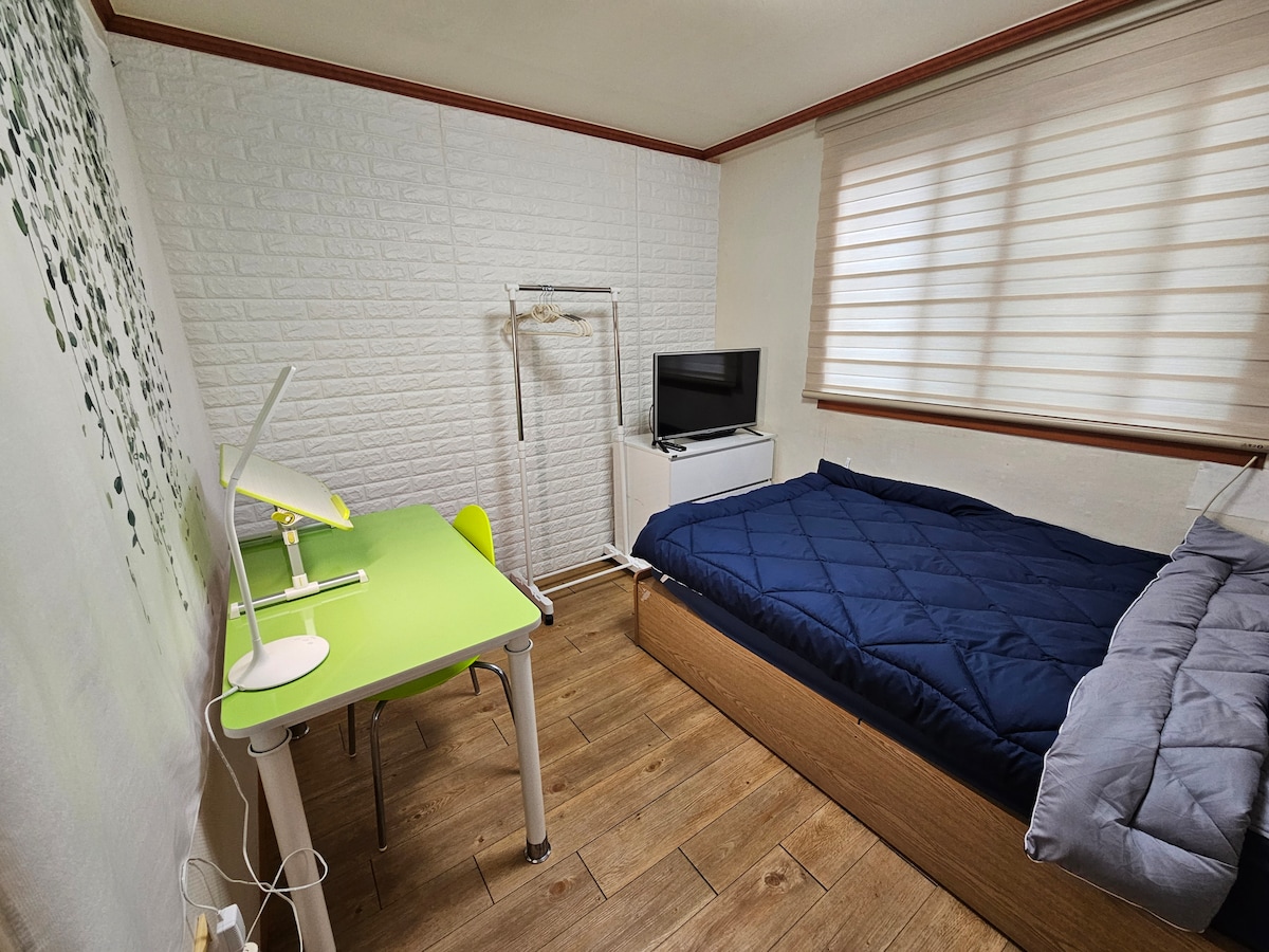 To je prostorna nastanitev, primerna za bivanje družin, znancev in prijateljev. 1 zakonska postelja, 1 super enojna postelja Na voljo je rezervna talna prešita odeja. Kuhanje je mogoče. Do poti z utežmi je 8 minut hoje. Možna ♡postaja 5 minut hoje Bolnišnica Chu♡ 8 minut hoje Bolnišnica St. Peter♡'s 10 minut Tik ♡pred Uijeojungjung Avtobusni terminal♡ v središču mesta, 1,7 km Univerzitetna♡ bolnišnica Eulji 1 km 15 minut hoje ♡Notranje drsališče Uijeongbu, 2,4 km (Avtobus 8, 11, 208 22 minut, 9 minut s taksijem in 5.500 wonov) ♡Daewon Passenger (letališki avtobusni terminal) 600 m 8 minut hoje, 1 ura in 10 minut z letališkim avtobusom do letališča Incheon, 40 minut od letališča Gimpo