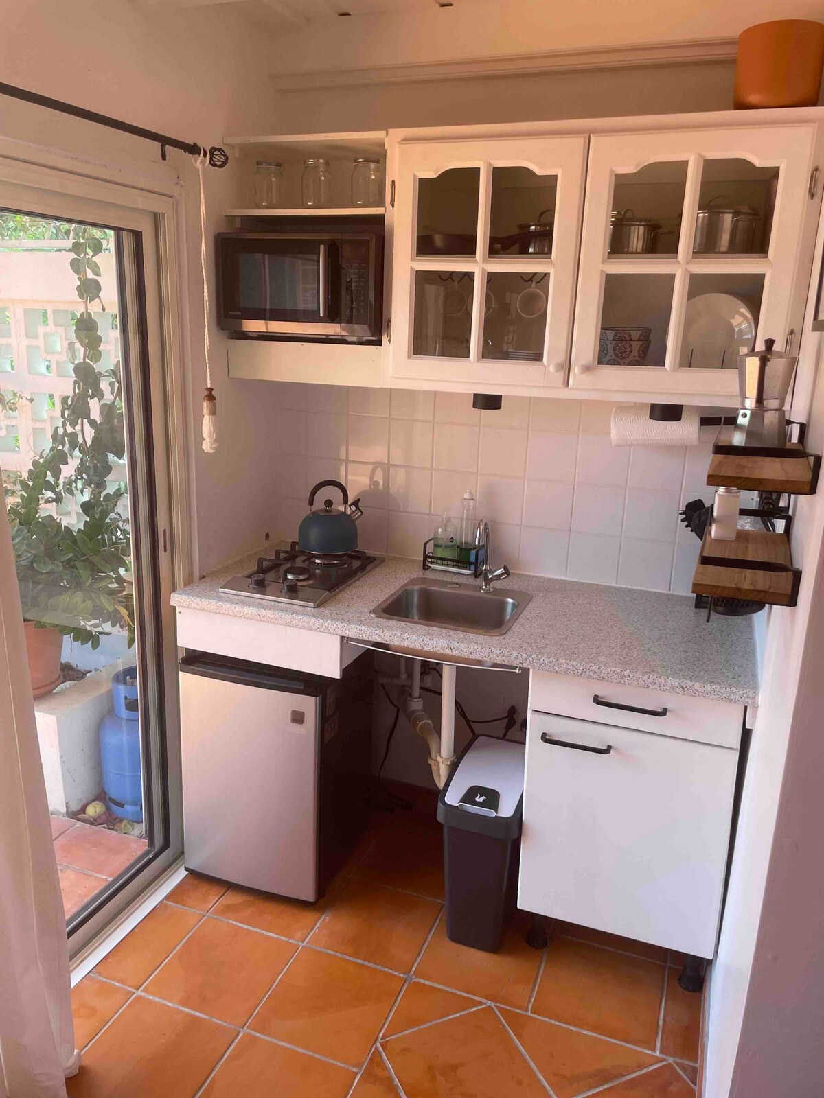 To je studio stanovanje, ki ga želite. Na odlični lokaciji v varni soseski, z vsem, kar potrebujete za popolne počitnice. Do supermarketov, najemov avtomobilov, restavracij in barov se lahko sprehodite. 30 sekund hoje od plaže Simpson Bay in6 min do plaže Maho, naše svetovno znane letališke plaže. Tam je na voljo tudi javni prevoz. Stanovanje je pred kratkim obnovljeno in opremljeno z klimatsko napravo, Netflixom, udobno kuhinjo, veličastnim vrtom in teraso s pogledom na letališče.