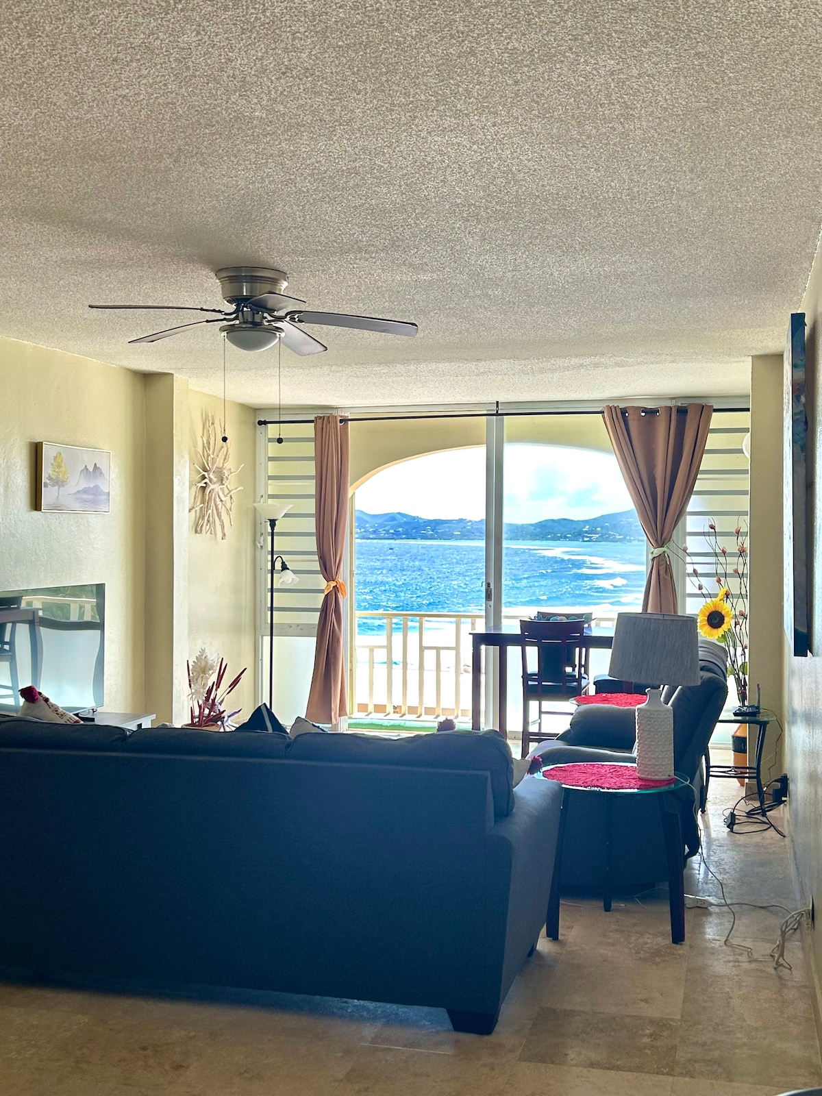 Pozabite na skrbi v tem prostornem in mirnem prostoru v tem čudovitem stanovanju ob plaži s pogledom na ocean. Velika okna, obrnjena proti oceanu, da se odprejo in poslušajo valove, ko se zbudite v raju. Dve veliki spalnici z lastno nadgrajeno zasebno kopalnico. Nadgrajena kuhinja s številnimi dodatnimi napravami za enostavno uporabo. Enota ima omogočen WI-FI z nadgrajenimi televizorji in predvajalniki Blu-ray v vsaki sobi ter pralnim/sušilnim strojem. Na priročni lokaciji s kratko vožnjo do središča mesta Christiansted.
