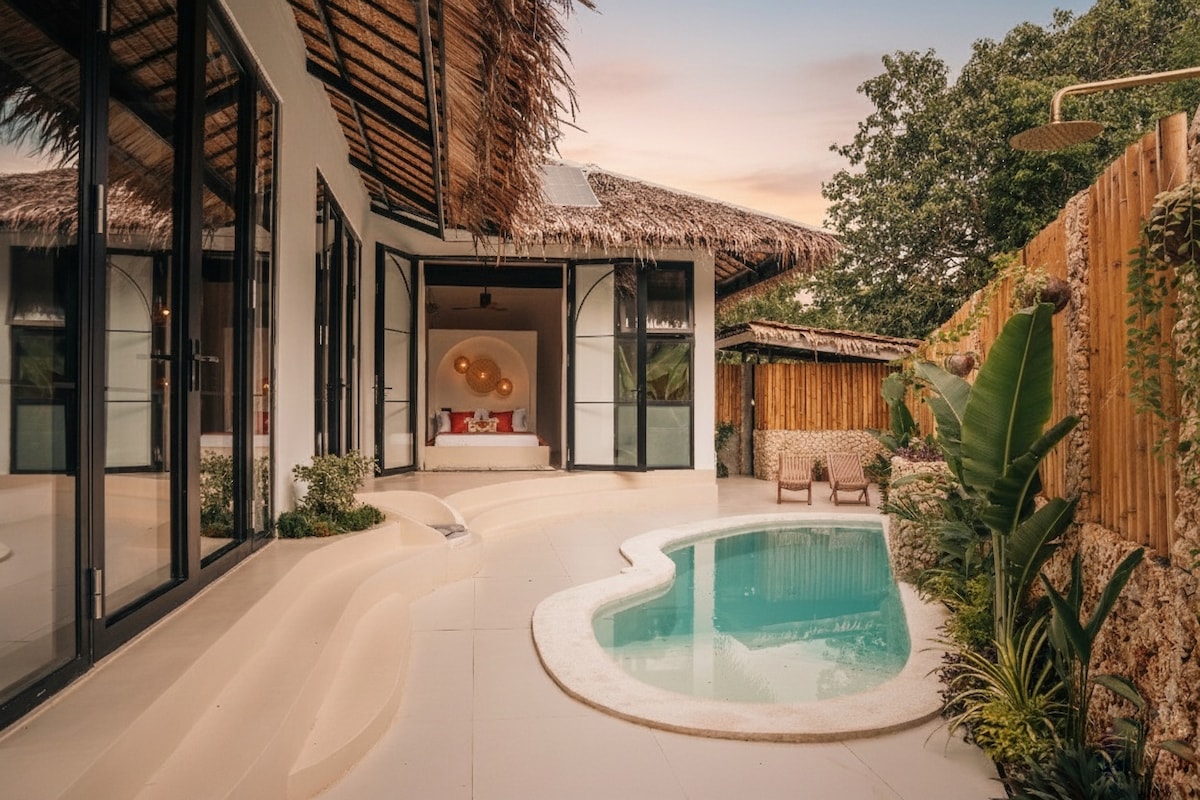 Bungalov Amber Lodge To zatočišče, ki ga je zasnoval arhitekt, je dopolnjeno s štirikolesnim pogonom Suzuki Jimny 4x4 in združuje nipo, bambus in mahagonij v toplo zatočišče. Uživajte v 24-urnem neskončnem bazenu, neomejeni masažni stoli HIRO, bogati izbiri zajtrka in popolnem dostopu do The Louvers House, mirnega skrivališča, kjer vas objemata narava in arhitektura. Vključeni so tudi prevozi iz pristanišča Siquijor ali Larene, da bo vaše bivanje popolnoma brezskrbno.