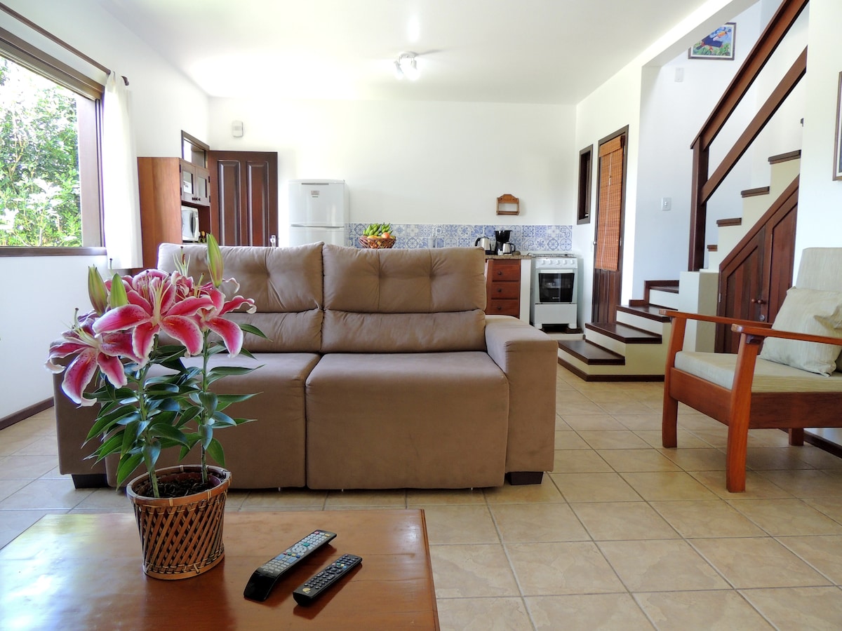 Nossa casa segue um conceito inovador unindo conforto, sustentabilidade e natureza. Ideal para casais, pet friendly. Está localizada em um lugar privilegiado de frente para o mar e cercado de mata nativa, em um terreno amplo e cercado. Nosso espaço dispõe de ar-condicionado, aquecedor, internet wi-fi 5G 200mb, cozinha completa, churrasqueira, alarme, e tudo o mais que é preciso para desfrutar desse paraíso ouvindo o mar e os pássaros.