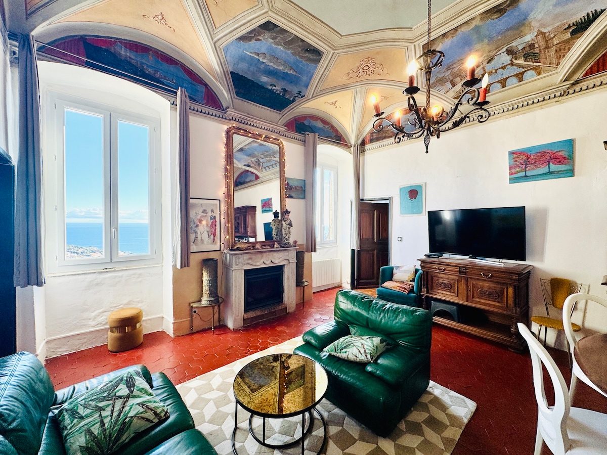 Séjournez dans une tour historique du Cap Corse avec une vue panoramique sur la mer et les montagnes. Cheminée, plafonds avec fresques d’époques , le charme d’antan avec le confort moderne et grande terrasse pour une escapade unique hors du temps.