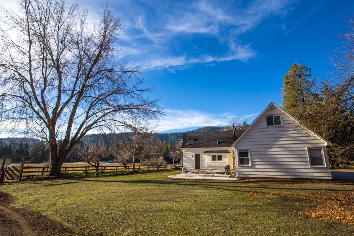 Prenovljena kmetija Mount Shasta na 27 hektarjih s starinskim šarmom in neverjetnim razgledom! Popolna lokacija, le nekaj minut od pohodnih poti, jezera in središča mesta.