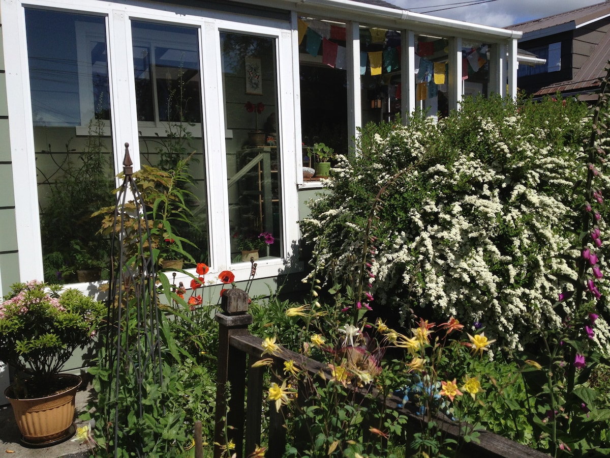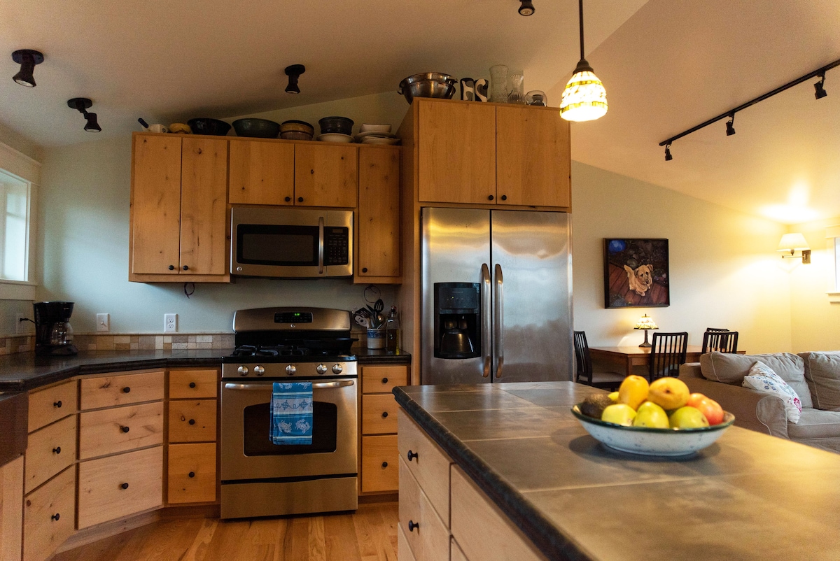 Prostorno stanovanje z 1 spalnico je v celoti opremljeno za vaše bivanje. Kot nalašč za obiskovalce in popotnike znotraj zvezne države. Uživajte v tej priročni lokaciji v neposredni bližini lokalnih poti, avtobusne postaje, šol, igrišč, trgovin z živili in pristanišč. Tri minute vožnje do centra mesta Sitka. To popolnoma opremljeno stanovanje z brezplačnim brezžičnim internetom, pralnim/sušilnim strojem in dvoriščem, polno divjih borovnic in grmovnic Huckleberry, je pripravljeno za vaše pustolovsko bivanje v čudoviti Sitki na Aljaski!