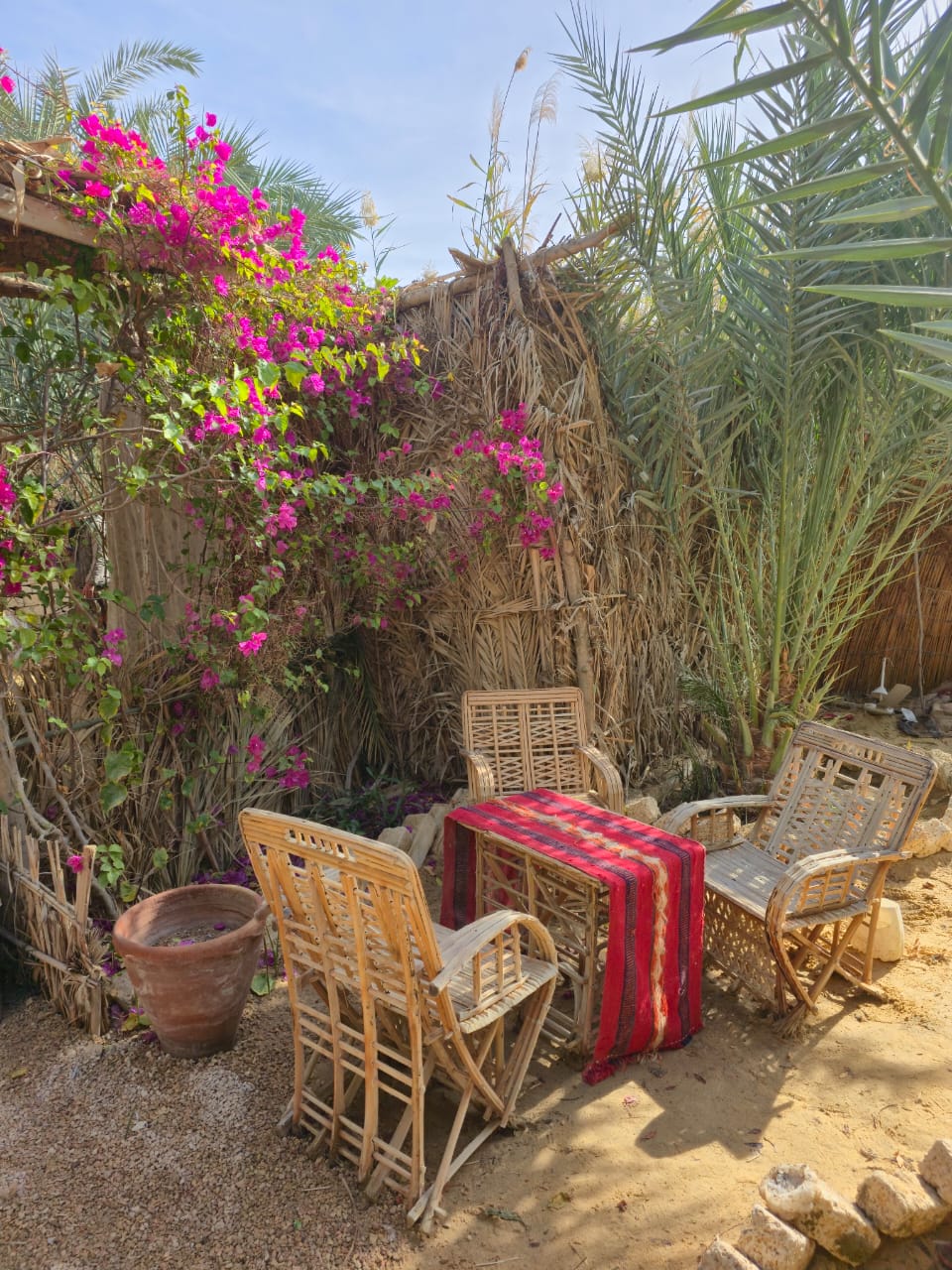 Looking for a serene retreat in Siwa? Welcome to your hidden desert gem nestled among palm trees. Warm desert days and cool nights are perfectly balanced here with a custom designed Siwan shaped pool for daytime dips and a cozy fire pit for evenings. You can enjoy stargazing and a view of the date palm forest from our spacious roof deck. For a unique culinary experience, our house chef can prepare and deliver delicious Siwan food right to your door. Embrace nature and unwind with us!