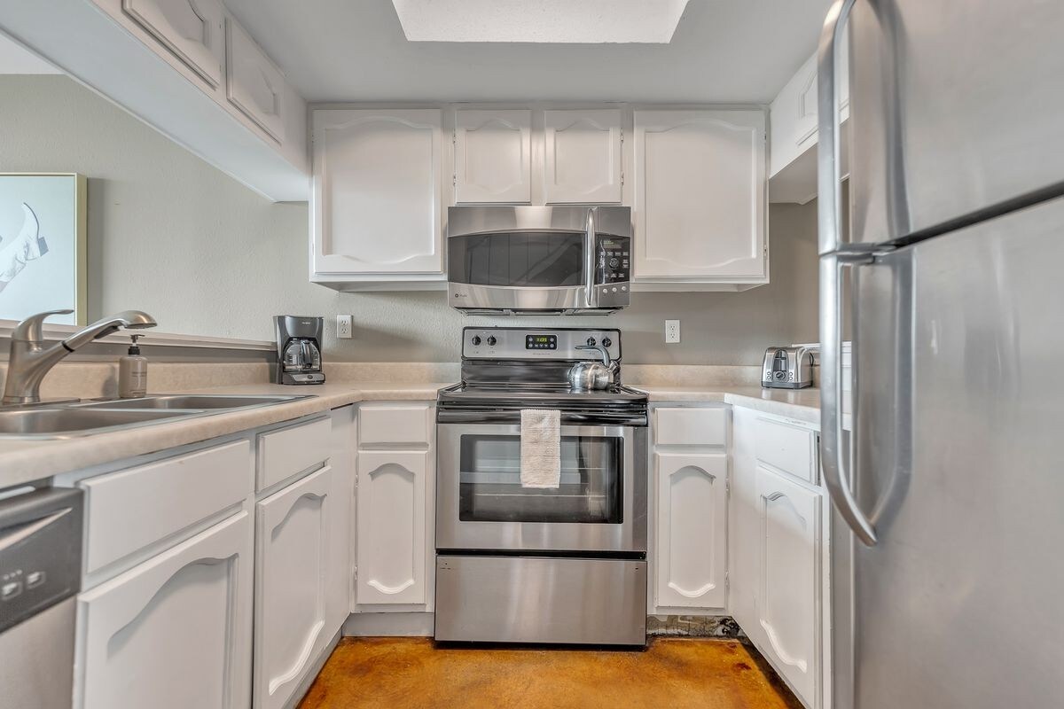 Pobegnite v miren kotiček v središču Austina v to prostorno in na novo prenovljeno stanovanje v mirni nizki stavbi. Posebnosti vključujejo *eno brezplačno ograjeno/rezervirano parkirno mesto*, *dve brezplačni kolesi*, vrhunske naprave, zasebno zunanjo teraso in udobno spalnico z zakonsko posteljo. Kavč z zakonsko posteljo omogoča, da v apartmaju spijo štiri osebe. Kopalnica je dostopna iz spalnice in dnevne sobe, zato je spalnica zasebna. Dva velika pametna televizorja sta pripravljena za pretakanje. Bivajte, sprostite se in uživajte!