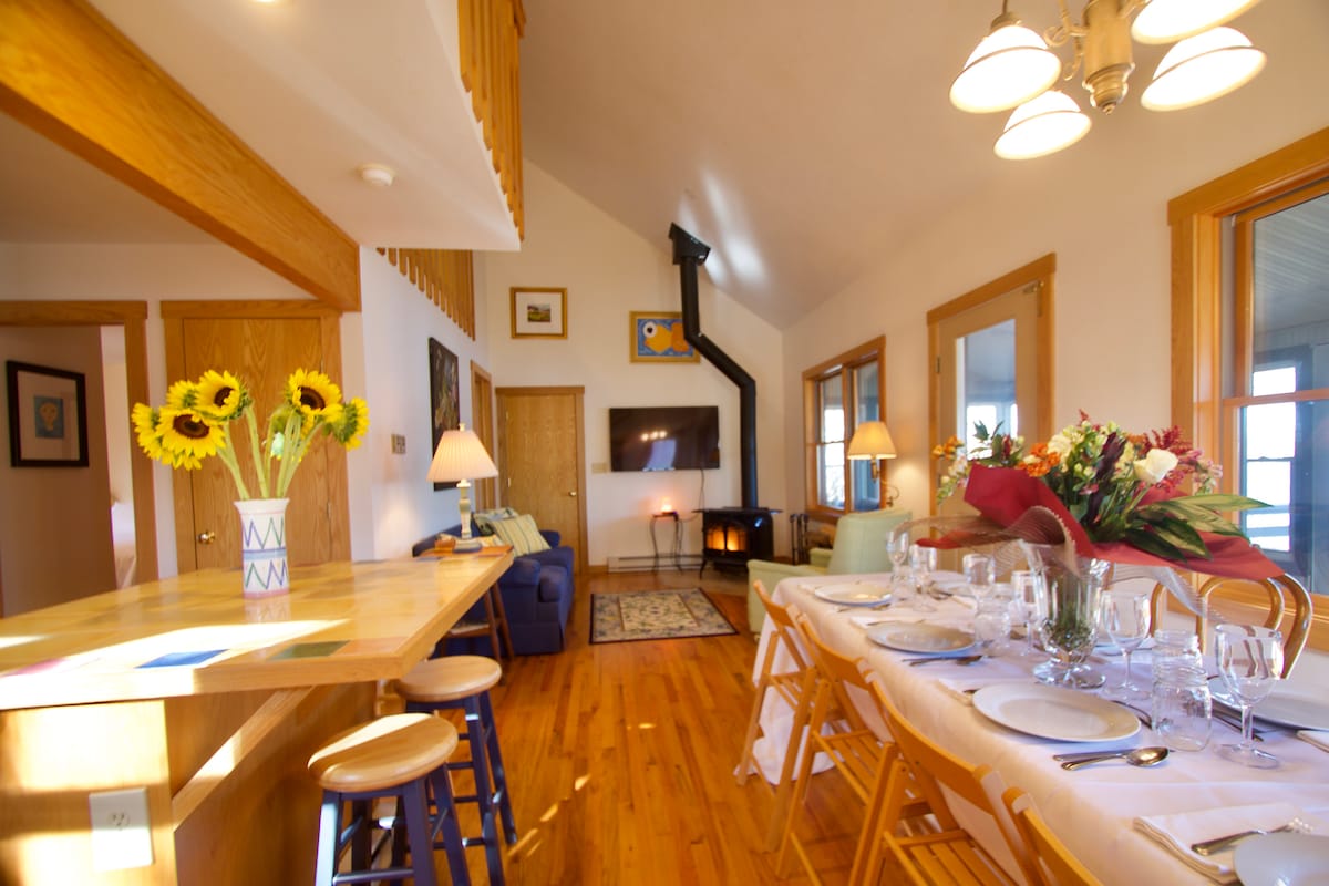 Sprostite se v tem mirnem bivališču v Skaneatelesu! Ta vesela, zasebna, na novo posodobljena stanovanjska hiša z 2 spalnicama je v bližini mesta v mirni soseski. Uživajte v zabavnih poletnih večerjah na veliki terasi s plinskim žarom. Sprehodite se ali kolesarite po kratkem kilometru do mesta in uživajte v jezeru Skaneateles in vsem, kar ponuja naša čudovita vas! Nakupovanje, jedilnica, čolnarjenje, pohodništvo, vinske kleti in pivovarne so v bližini, pripravljeni na uživanje, ne glede na sezono!