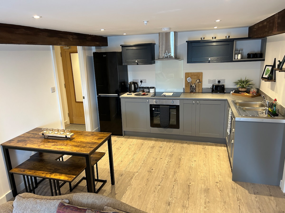 Naša udobna in vabljiva prizidka se nahaja nad predelanim 200 let starim kmetijskim poslopjem in se nahaja na mirnem dvorišču Rose Cottage. Ta enosobna nastanitev ima centralno ogrevanje, kuhinjo s sodobnimi napravami in ločen bivalni prostor s pametno televizijo. DVD predvajalnik (z izborom DVD-jev) in brezplačen Wi-Fi. Dvoposteljna soba ima več nagrajeno vzmetnico Emma Original, pametno televizijo in kopalnico s straniščem, umivalnikom in prho s toaletnimi potrebščinami in brisačami.