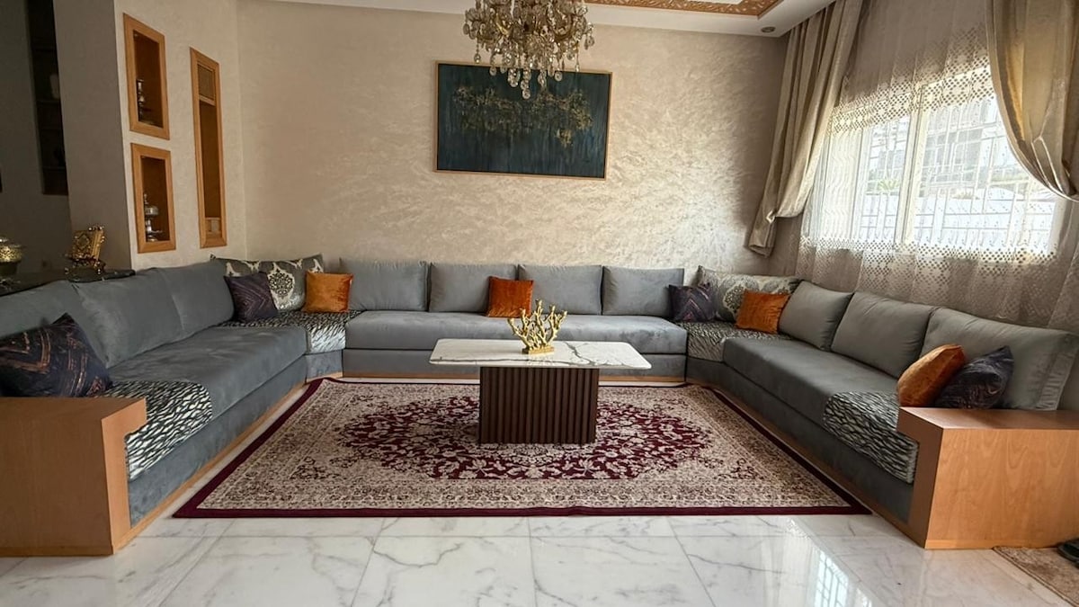 Dobrodošli v tem čudovitem stanovanju v prestižnem okrožju Souissi, ki se nahaja v pritličju in vključuje 2 spalnici, 2 kopalnici, prostorno dnevno sobo in opremljeno kuhinjo za udobno bivanje. Uživajte v mirnem, varnem in prijetnem okolju, ki je idealno za hojo. Blizu lekarne, 5 minut hoje do kavarne in restavracije Le Pavillon des Gourmets ter 5 minut vožnje do Marjane Hay Riad, trga Ryad in palače Jawhara. Luksuzni golf Dar Essalam je le 10 minut stran.