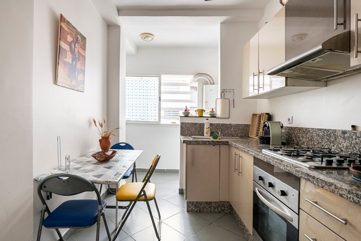 Čudovit sodoben in svetel dvoetažni apartma v Rabatu, ki se nahaja le streljaj od Aswak Assalama in 15 minut hoje od stadiona Moulay Abdellah. Uživajte v treh udobnih spalnicah, vključno z glavno spalnico s kopalnico in garderobo, dveh prostornih dnevnih sobah, prijetni jedilnici in veliki, popolnoma opremljeni kuhinji. Ta dvoetažni apartma je kot nalašč za družine, prijatelje ali poslovne popotnike, saj združuje udobje, mir in prijetno vzdušje za nepozabno bivanje.