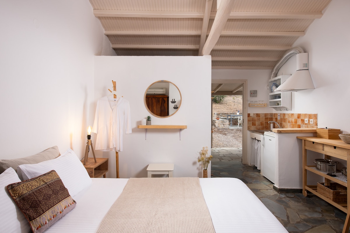 Dobrodošli v tradicionalnih hišah ob morju, v čudovitem zalivu Agios Petros. Tradicionalne hiše ob morju so sestavljene iz 5 garsonjer in 3 tradicionalnih hiš. Zgrajeni so na zasebni posesti 12.000 m2, ki vključuje sadovnjak s sadnimi drevesi, mandeljami in oljčnimi drevesi. Do namestitve se dostopa prek zasebne ceste in ima parkirišče. Zaliv Agios Petros je odmaknjen majhen zaliv na jugovzhodni strani otoka, 8 km od pristanišča Patitiri.