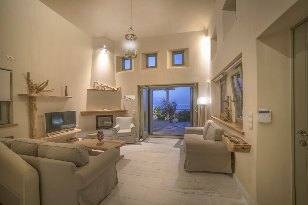 The villa is next to the Chorefto beach. Built with the basic natural materials from the area, stone and wood. The materials used are considered art constructions, perfectly safe for health and give the entire building a natural colour image. My villa is suitable for couples, business travellers and families (with children).