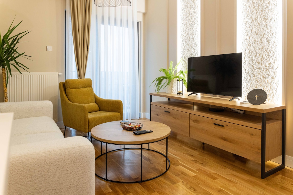 Zabavajte se z vso družino v tem elegantnem bivališču. Dobrodošli v našem »stanovanju v centru«. Naše stanovanje je popolnoma novo in sodobno zasnovano ter ima vso opremo za vaše potrebe( popolnoma opremljeno kittchen, udobno spalnico in dnevno sobo ter mini telovadnico v garaži). 1,7 km od Makedonskega trga ali 10-15 minut hoje. Naša topla dobrodošlica vključuje: mirno in mineralno vodo, kavo, čaj in zdrav bar s prigrizki.