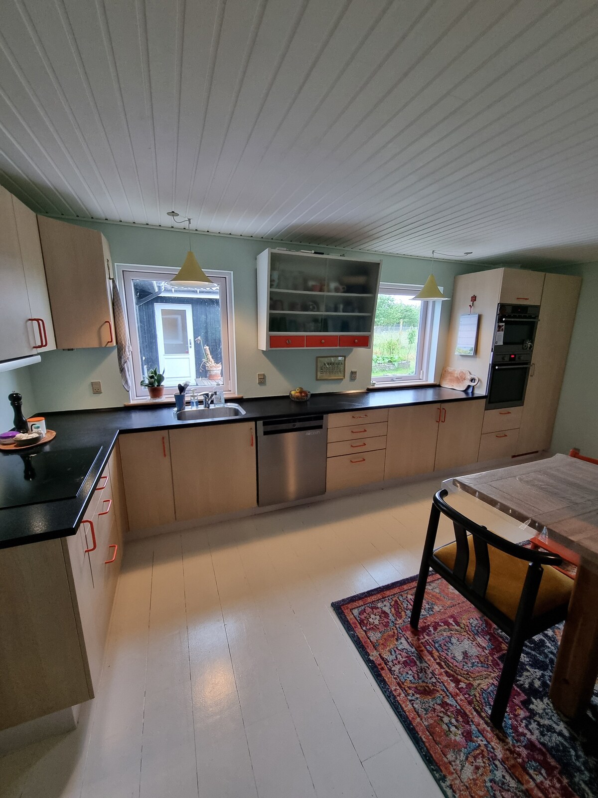 Čudovita poletna hiška na deželi od leta 2009, 250 metrov do čudovite otrokom prijazne peščene plaže. 100 metrov do trgovine z živili. Manjša spalnica z zakonsko posteljo, večja otroška soba s 3 enojnimi posteljami. Poleg tega sta na voljo dve vzmetnici Velika kopalnica s pralnim in sušilnim strojem. Odlična kuhinja z vso opremo, ki je odprta v dnevno sobo. Wi-Fi in Chromecast na obeh televizorjih Čudovit zaprt vrt s trampolinom, terasa z bivalnim pohištvom, plinski žar (5 €). Psi so dobrodošli, vendar ne na pohištvu! Stojalo za polnjenje 3,50 SEK na kWh Savna: 250 DKK na dan