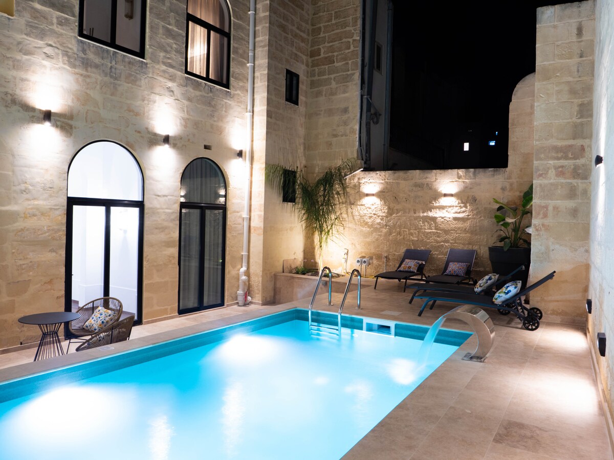 Pozdravljeni, popotniki in dobrodošli v EKSKLUZIVNI, EDINSTVENI osrednji Palazzo NA MALTI. Naši gostje bodo imeli dostop do 1. NADSTROPNE dediščine PALAZZO s 5 nadstandardnimi sobami, od katerih ima vsaka mini hladilnik, sefe, klimatsko napravo in vse posamezne kopalnice z dostopom do čudovite TERASE, z dostopom do popolnoma opremljene kuhinje. PALAZZO ima dostop do sosednjega hotela z DOSTOPOM DO notranjega bazena, STREŠNEGA bazena, samopostrežnega zajtrka in celo do TELOVADNICE. Smo omenili neverjetne klimatske naprave in WI-FI ?