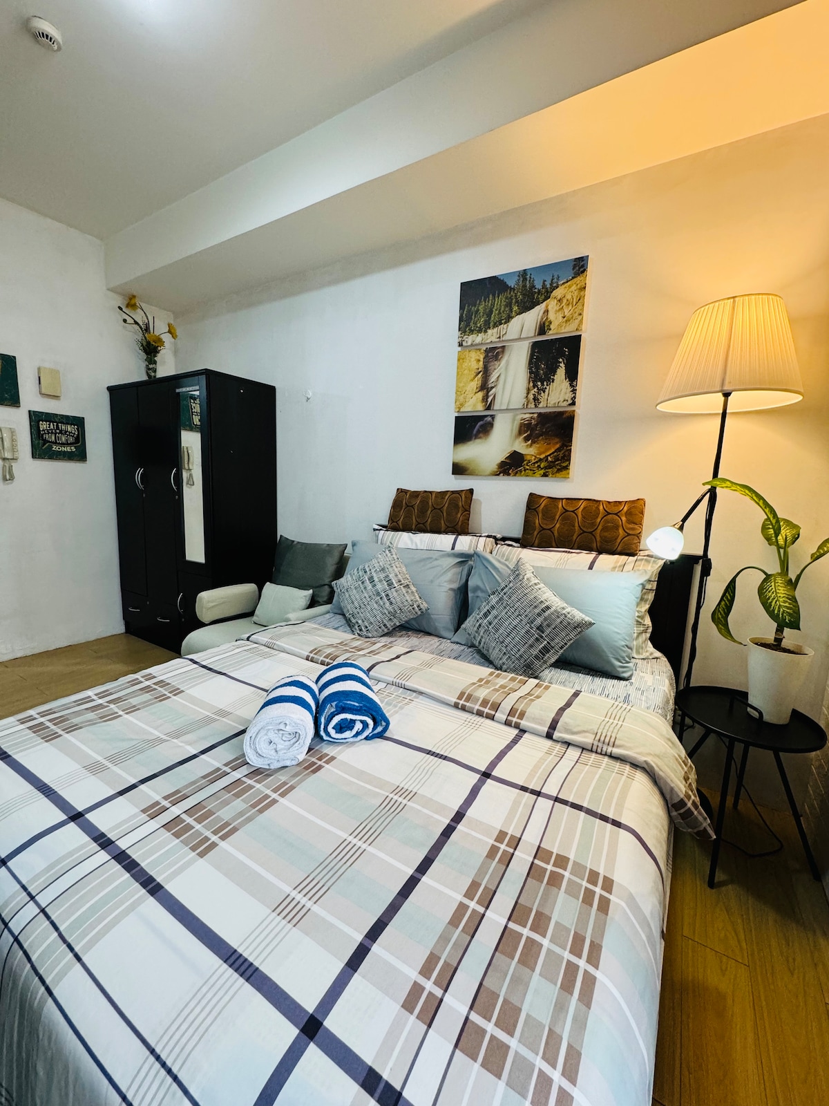 V ŽIVO! Ne glede na to, ali ste na poslovnem potovanju, obiskujete družino ali potujete skozi Azijo, ne iščite dlje. Kar je bila nekoč enosobna stanovanjska enota, je bila zdaj predelana v prostoren velik studio (osem kvadratnih metrov!). Nahaja se v eni od najvišjih stanovanjskih stavb na Filipinih in je lahko vaš dom. Če so izbrani datumi rezervirani, si lahko v mojem profilu ogledate tudi naše druge garsonjere, ki jih upravljate.