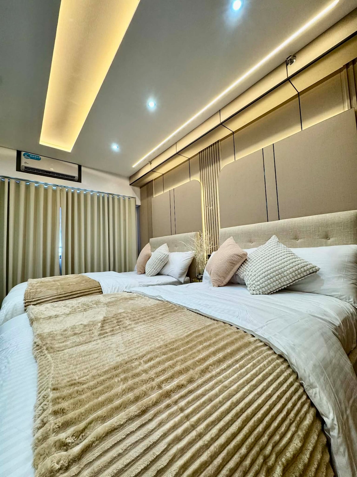 Popolnoma nov luksuzni apartma | Navdihnjen z hotelom | Brezplačno parkiranje med tednom za goste, ki se vračajo Prepustite se prefinjenemu udobju v nastanitvi Shore 2 Residences, ki je čudovito oblikovana in v celoti klimatizirana. V njej sta dve zakonski postelji, zasebni balkon, elegantna notranjost in premišljeno urejene osnovne potrebščine za resnično hotelsko izkušnjo. Na voljo je tudi plačljivo parkirišče. Idealno za največ 5 gostov (4 odrasle osebe in 1 otrok), popolno za pare, družine in zahtevne popotnike, ki iščejo slog, udobje in eleganco.