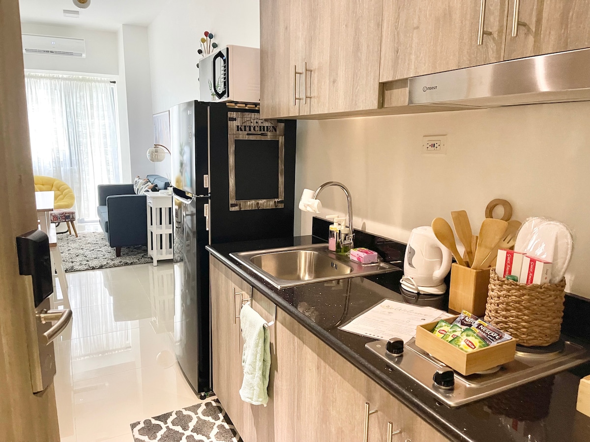 Strategically located at the EDSA Landmark, where transportation and commercial centres are within your reach. The community is quite new, well maintained with 24H security . The unit is stylish, fresh and clean in a modern contemporary design style. Ideal place for staycations, for business travelers, and for vacationing/returning OFWs. Rest assured we’re taking extra care to disinfect frequently touched surfaces between reservations.