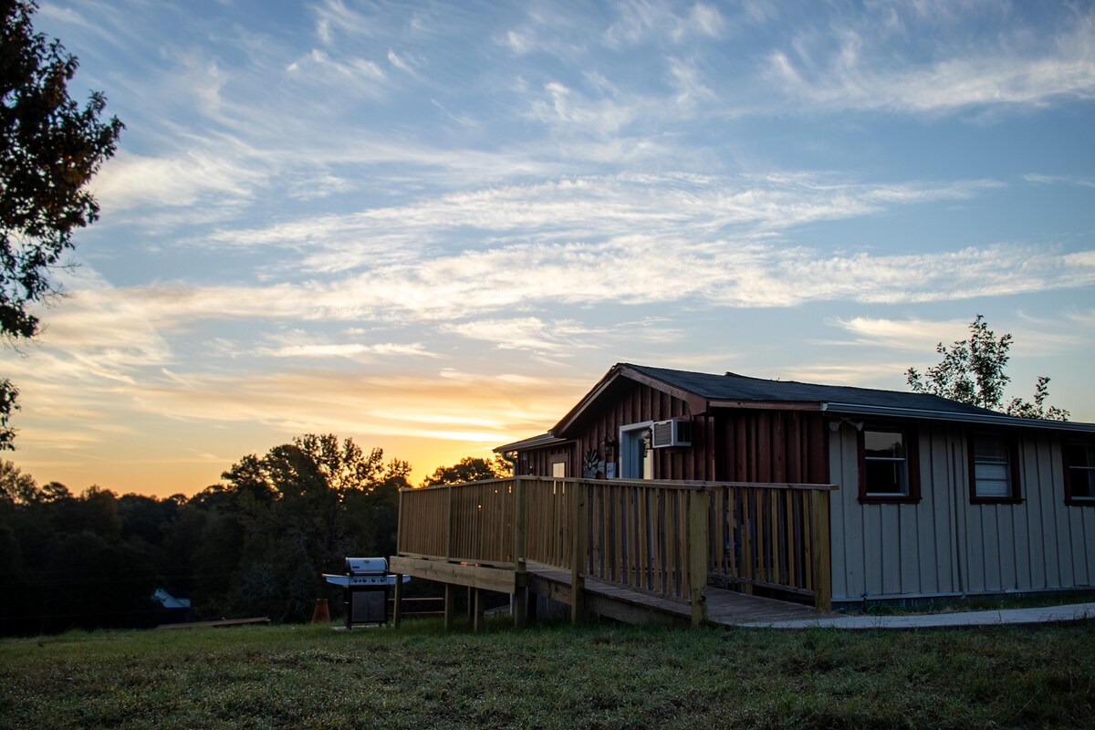 The Barn at Neches A cozy 4-bedroom, 1.5-bath barn-style retreat. The kitchen and all bedrooms are located UPSTAIRS, offering a comfortable setup with 2 queen beds and 2 sets of bunk beds. Guests also have access to a primitive pistol pit gun range. Please note this area is still under development and is available for use at your own risk, as it is not staffed. Relax and unwind in the newly added outdoor hot tub, conveniently located on the deck! Firewood is provided
