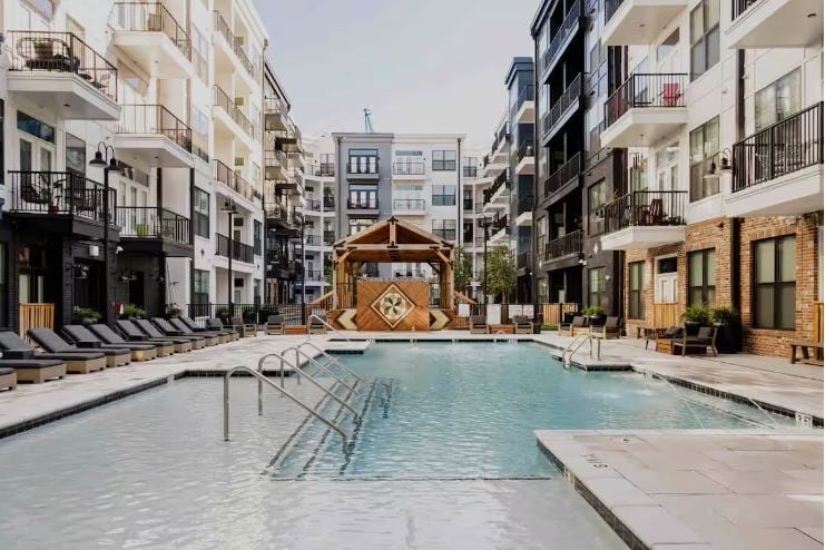 Čudovito stanovanje v središču mesta Nashville. Bridge Stone Arena in Broadway sta le 2 ulici stran. Uživajte v vznemirjenju, ki ga ponuja Nashville. Glasbeno mesto, restavracije, nakupovanje, muzeji, nočno življenje in še več – vse to je dosegljivo peš. Uživajte v razkošni opremi, bazenu v slogu letovišča in dvorišču s plinskimi žari in kurišči. Čudoviti prostori za sprostitev s prijatelji in uživanje v pijači. Stavba je dobro opremljena s profesionalnimi prostori za delo in sodobno dvonadstropno telovadnico. DOVOLJENJE ZA KRATKOROČNI NAJEM ŠT. 201807236