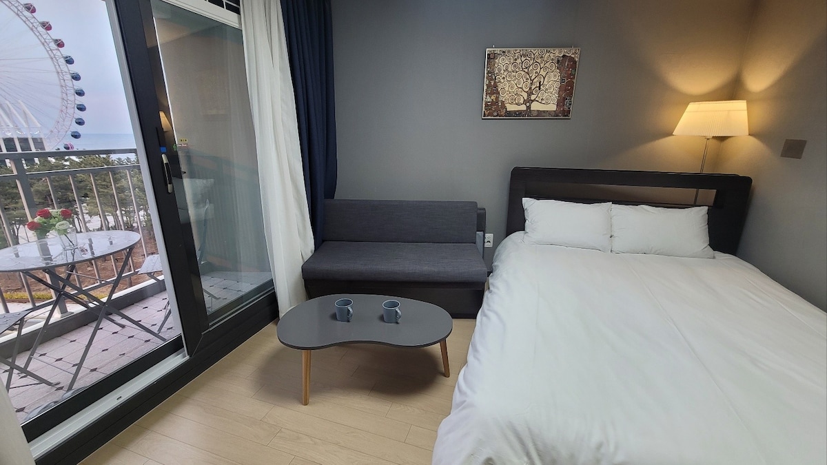 ☆ 객실 리뉴얼 26.2.5 : 부분리모델링, 침구 신설 (서양화 작가님께서 직접 세팅:모던분위기) -전담청소팀이 단독 관리하는 객실 -게스트 수수료 및 별도청소비 없는 객실(셀프퇴실규칙안내) 게스트님의 숙박비용절감을 위해 예약 시 발생되는 에어비앤비 게스트수수료 및 청소비를 호스트가 전액 납부하도록 세팅하고 있습니다. 대신 쓰레기 및 재활용정리 규칙을 준수해주셔야 합니다. [우리 객실 브리핑] 매일아침 바다위로 떠오르는 태양빛을 온전히 감상할 수 있는 예쁜 공간입니다. 매일저녁 달빛으로 물드는 속초바다를 즐기실 수 있는 멋진 공간입니다. 달콤한 파도소리를 자장가삼아 깊은단잠에 빠져들어보세요. 테라스에서 대관람차의 화려한 조명을 배경삼아 나만의 인생한컷 남겨보시면 어떠실까요:) 속초바다와 맞닿은, 우리만의 시간으로 채워지는 로맨틱한 이 곳으로 여러분을 초대합니다♡