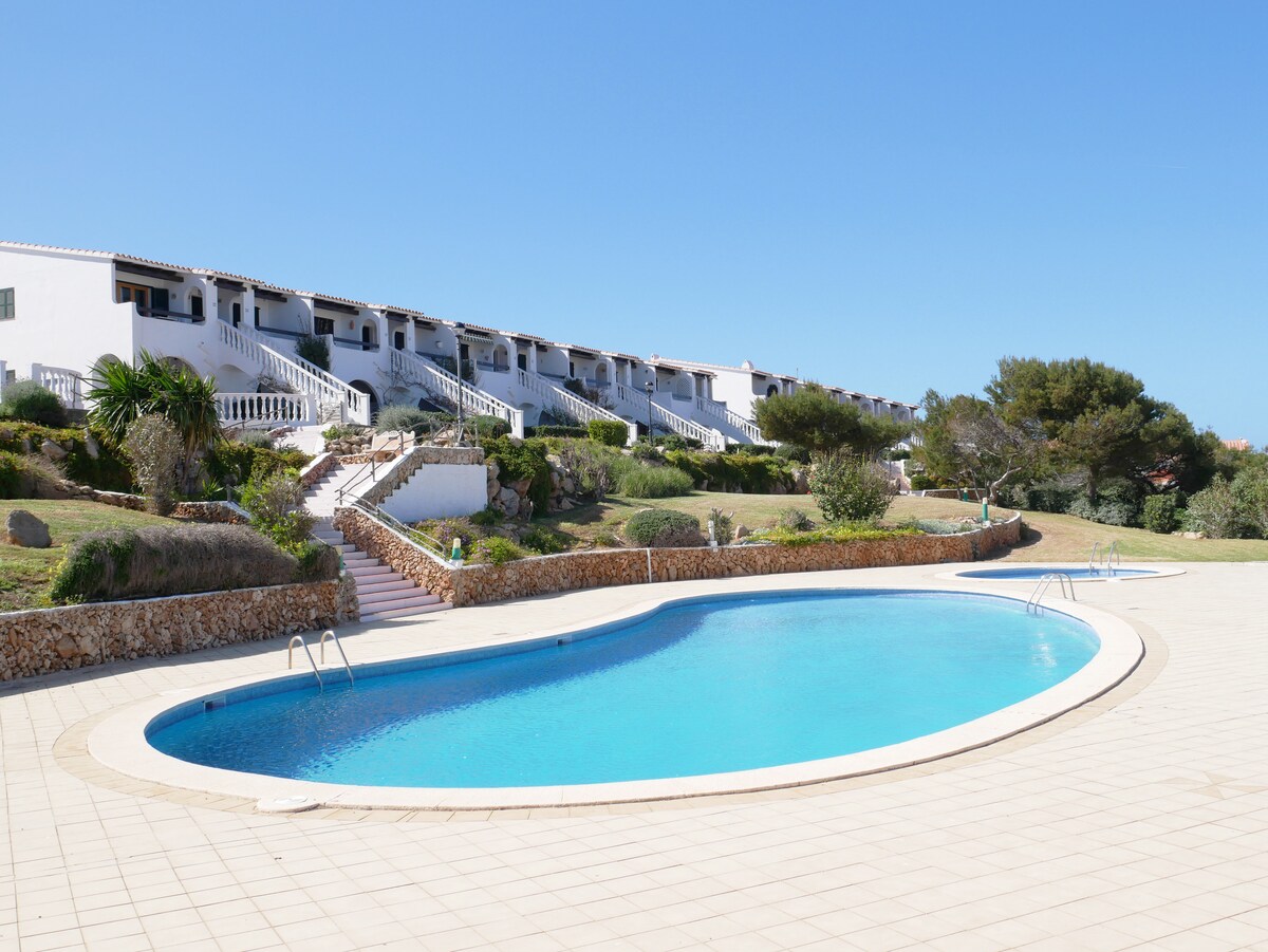 Bonito apartamento en complejo residencial con piscina y zonas ajardinadas en una zona tranquila y preciosa de la isla. Situada al lado de dos playas de increible belleza (Calo Blanc y playa de Binisafuller) y al lado del inicio de una de las etapas del famoso “Cami de Cavalls”. El apartamento esta completamente equipado (wifi, lavadora, etc) y dispone de todas las comodidades. Ademas tiene terraza propia la cual es ideal para desayunar y relajarse mirando la piscina y el jardin. Te encantara!
