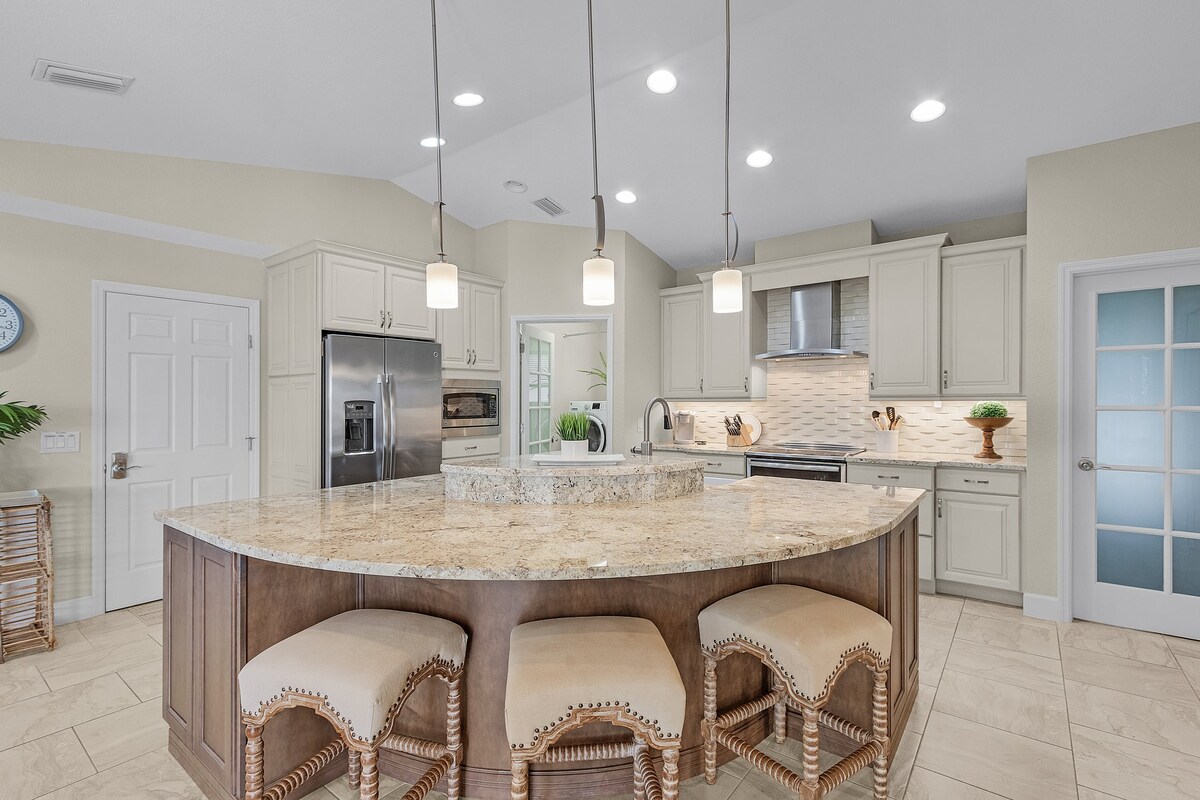 1)Čudovita novejša hiša na 2 hektarjih 1800 kvadratnih metrov s 3 BR in 2 kopalnicama spi do 8 oseb. 2)Ima velik nadzemni bazen 18' x 33' in velik ribnik ter zunanji bar/žar in tropsko krajinsko parkirišče za 4 avtomobile. 3)15 minut vožnje od središča mesta Punta Gorda z veliko odličnimi restavracijami, majhnimi trgovinami in bari z živo glasbo in še veliko več, 7 min vožnje z najbližjo trgovino winn-dixie. 4)10 min vožnje do letališča Punta Gorda. Nahaja se v mirni soseski z velikimi hrasti v slepi ulici.