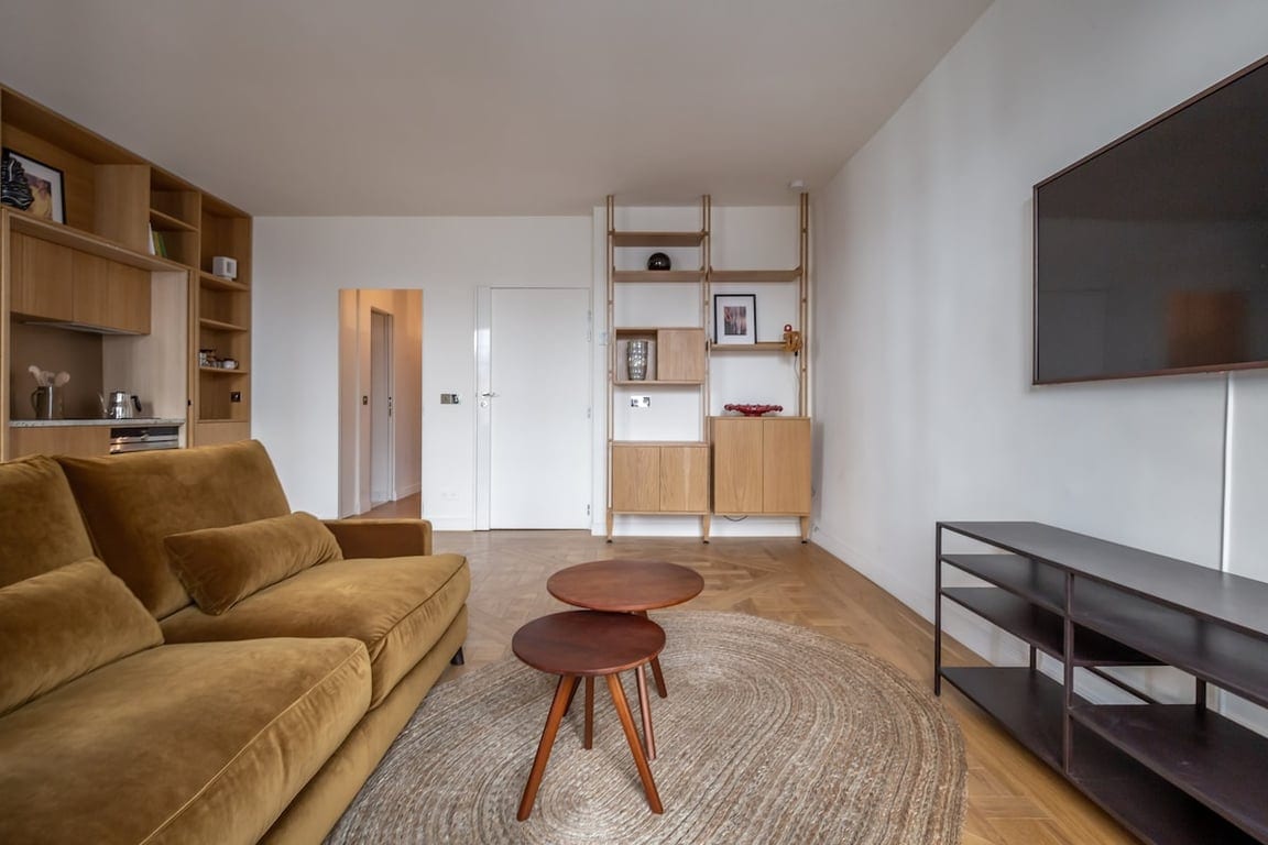 Architect design 2 room apartment, Safest and most luxurious area of Paris 7th facing a one star Michelin restaurant. Shops, museums, Eiffel Tower, Invalides, Alexandre III bridge, Seine river. Super Quiet, classy, safe Parisian building. One bedroom, chimneys and desk, luxury bed & bedlinen, Italian design bathroom, living room, stylish sofa, chimney, Ultra high speed WIFI, tv 900 channels, luxury kitchen. Wooden floor, mirrors. Double-glazing windows. Air Conditioning +air purifier