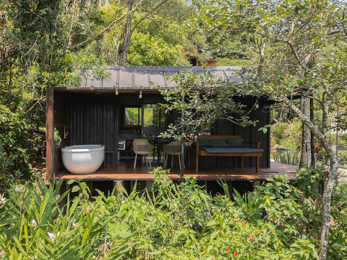 Somos o @greenhouseexperience Um refúgio exclusivo em meio à natureza, a apenas 3 km de Jurerê Internacional. Nosso chalé, perfeito para casais, oferece o conforto essencial para uma experiência inesquecível de conexão com a natureza. Relaxe na varanda cercada por árvores, aproveite a sauna seca, a jacuzzi ao ar livre e aqueça-se à beira da lareira a lenha. A propriedade também conta com uma unidade residencial e outra cabana, onde funciona um espaço terapêutico que atende hóspedes e visitantes.