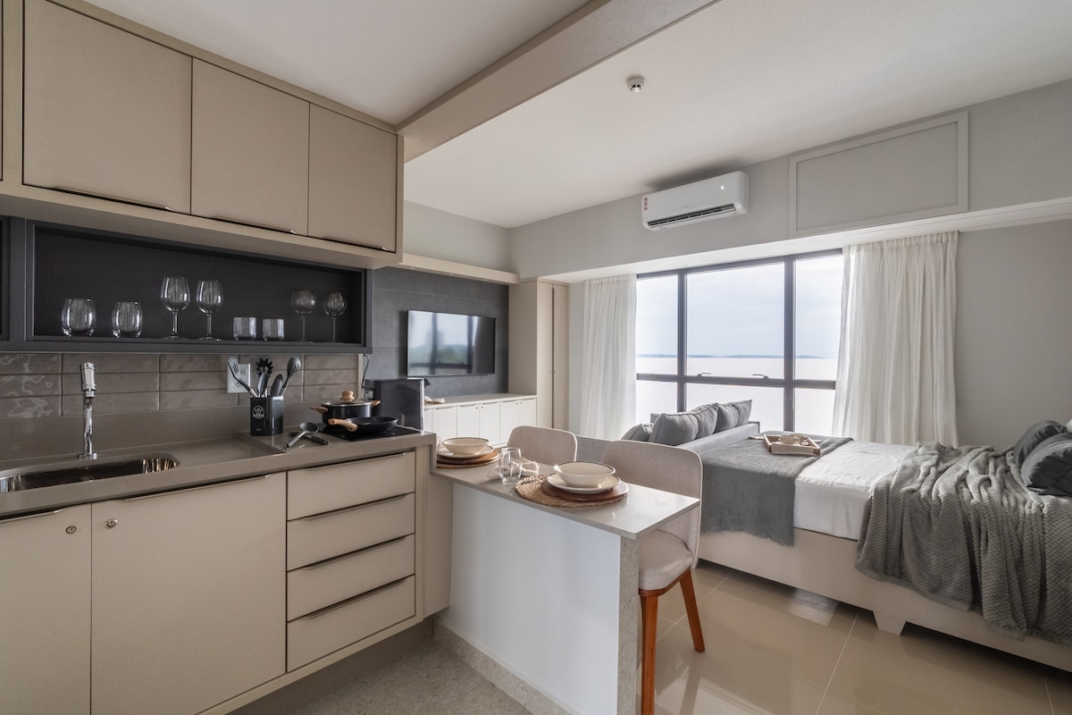 Flat Manaus Skyline Naše stanovanje združuje udobje doma v celotno hotelsko strukturo s 4 zvezdicami v osrčju Manausa ✔ Prostorna in elegantna suita v porcelanu ✔ Osupljiv razgled na most Rio Negro Izdan je ekskluzivni ✔ internet in pretočna televizija ✔ Kuhinja je opremljena z Nespressom, cvrtnikom, hladilnikom ter pralnim in sušilnim strojem ✔ Enxovalna postelja, kopalnica in posoda 🎯 Diferencial Bazen s 360-stopinjskim razgledom, opremljena telovadnica, savna, restavracija, 24-urna recepcija, garaža in trgovina.
