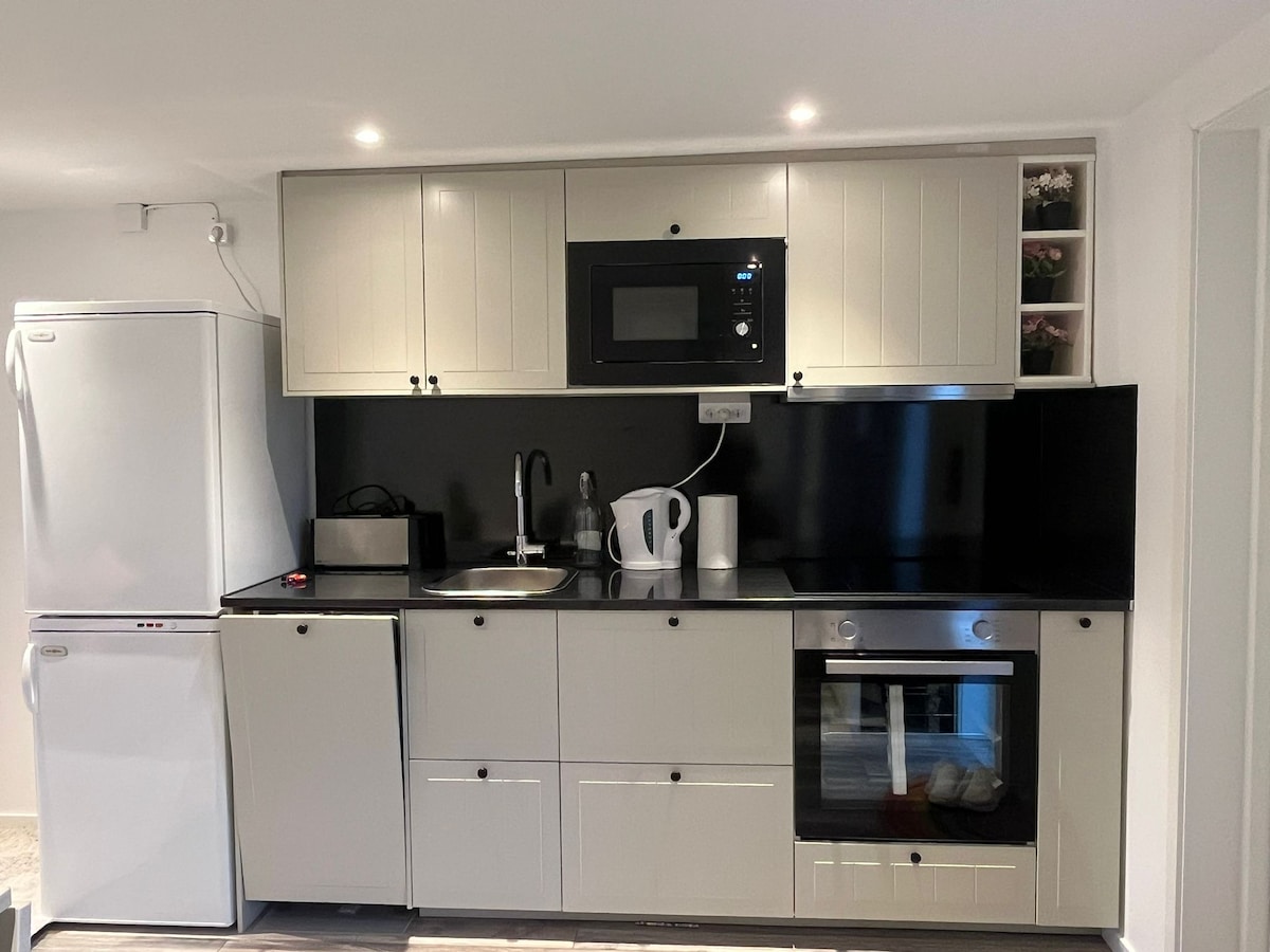 Year-round accommodation, 40m2 built in 2016 with all the amenities you could wish for. Fully equipped kitchen, bathroom with washing machine, and more. Two bedrooms and a large combined kitchen / living room. Dining table for four. Balcony with sunroof, dining area and sofa group. With the sofa bed you can sleep up to five people in the house, although three adults is optimal, or two adults and two children. AppleTV with premium accounts on Netflix, Disney+ and AppleTV+.