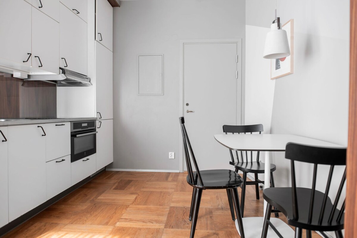 Uživajte v elegantnem doživetju v tem sodobnem bivališču v središču mesta (zgrajeno leta 2022). Okrašeno z oblikovalsko klasiko iz sredine stoletja in pogledom na Stockholmske strehe. Sončna zasebna terasa s površino 10 kvadratnih metrov, ki gleda na jug, in dostop do velike skupne strešne terase z ležalniki, mizami in stoli ter soncem ves dan. 5 minut hoje od letališke avtobusne postaje. Blizu primestnega vlaka, podzemne železnice in avtobusne postaje. Petnajst minut hoje do središča mesta. Uživajte v bogatih kulinaričnih in kavarnah Vasastana.