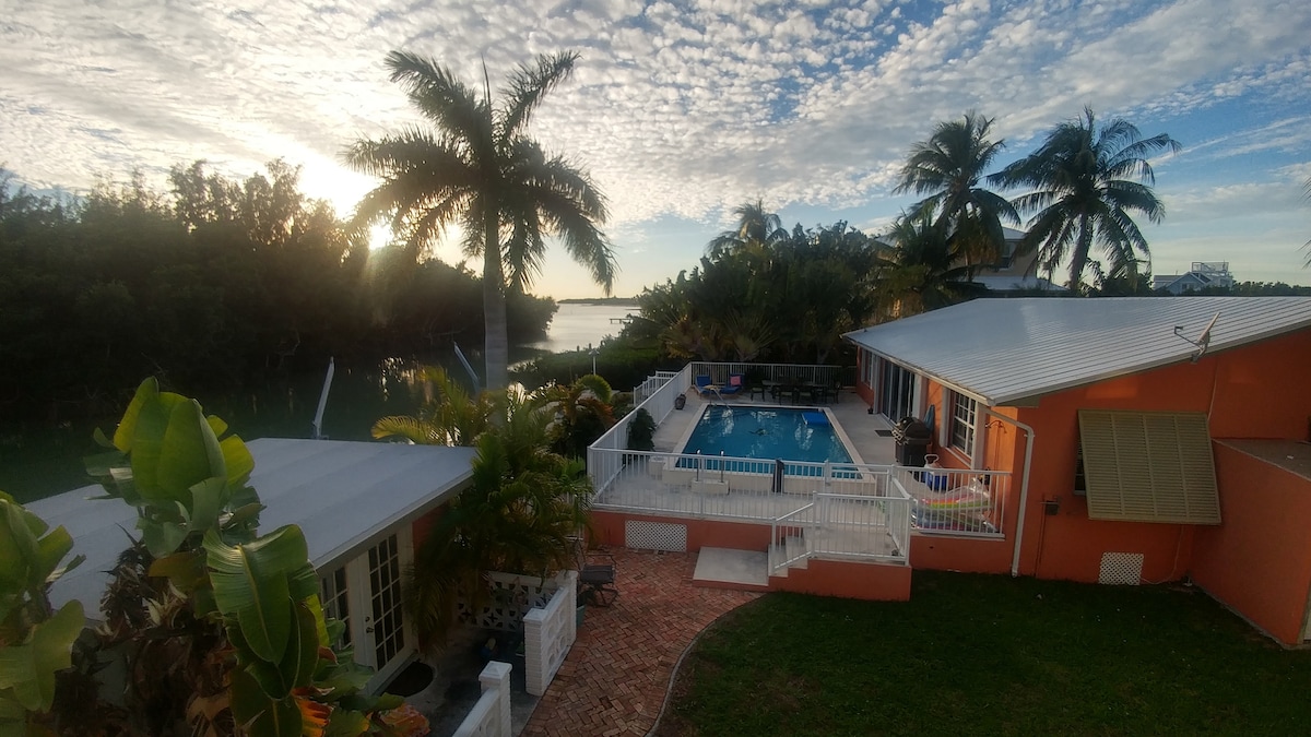 2025 - Nov betonski pomol, blato in ribja filetna miza. To prenočišče v pritličju ob obali je prejelo novo dvigalo za obraz. Popolnoma prenovljena 3 spalnica z bonus sobo v dobro znani soseski Sombrero Beach. Le kratek sprehod do peščene plaže. Prenočišče ima odprt tloris s pogledom na bazen in novo tiki kolibo. Uživajte v jutranji kavi in veseli uri na verandi s pogledom na široko laguno. Pridite in ustvarite družinske spomine v čudovitih ključih.