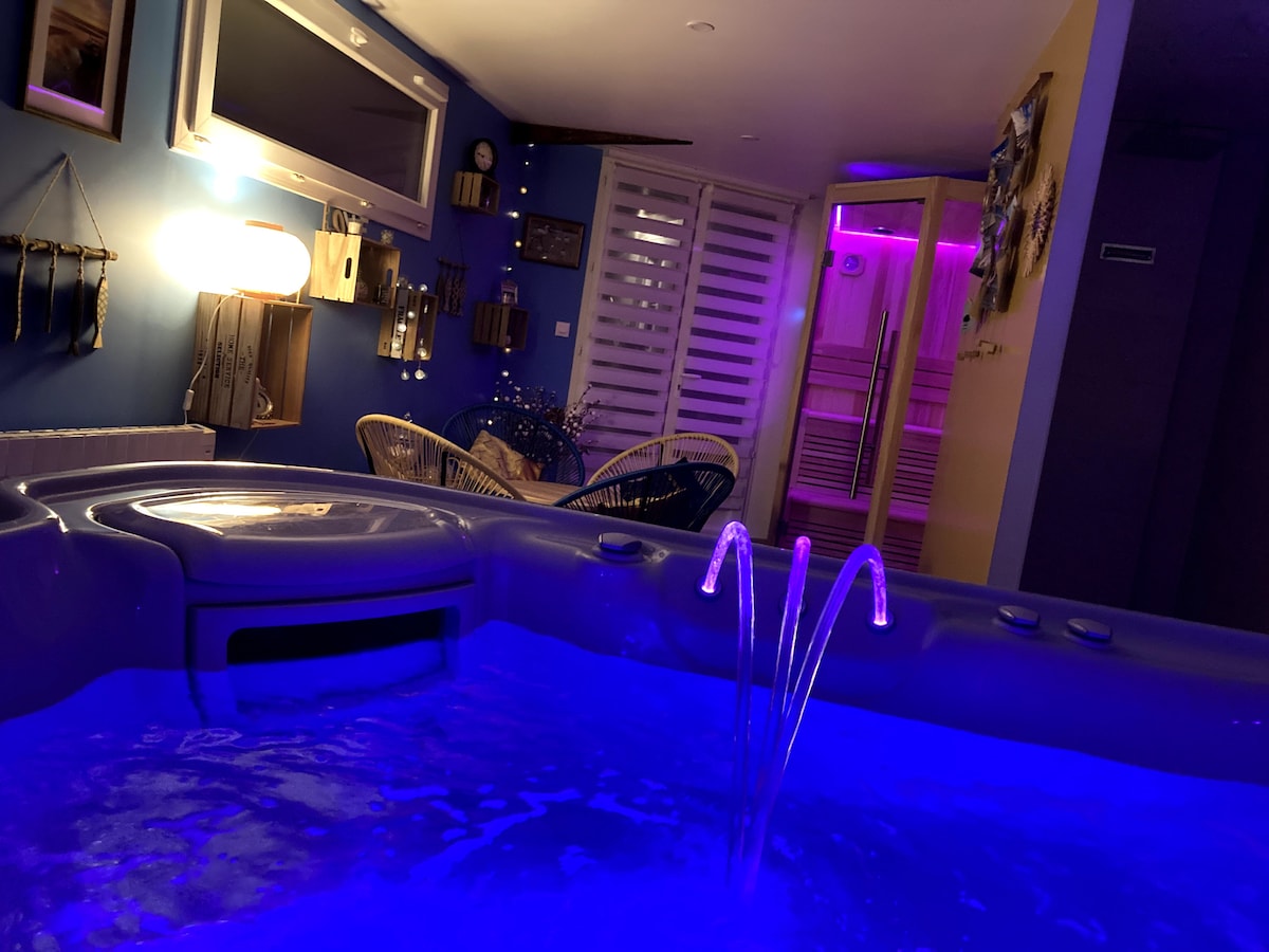 Majhno ljubezensko gnezdo v osrčju St-Valery-sur-Somme, zaliv Somme sprejema pare za trenutek sprostitve in miru zaradi spa območja in spalnice z veliko zakonsko posteljo. Toplo dobrodošli , kopalni plašči in udobne brisače vas bodo spremljali v spa prostoru, opremljenem z velikim jacuzzijem z 2 masažnima prostoroma, finsko savno in dvema ločenima prhama. In še več kakovosten ozvočenje in kromoterapija za užitek čutov.