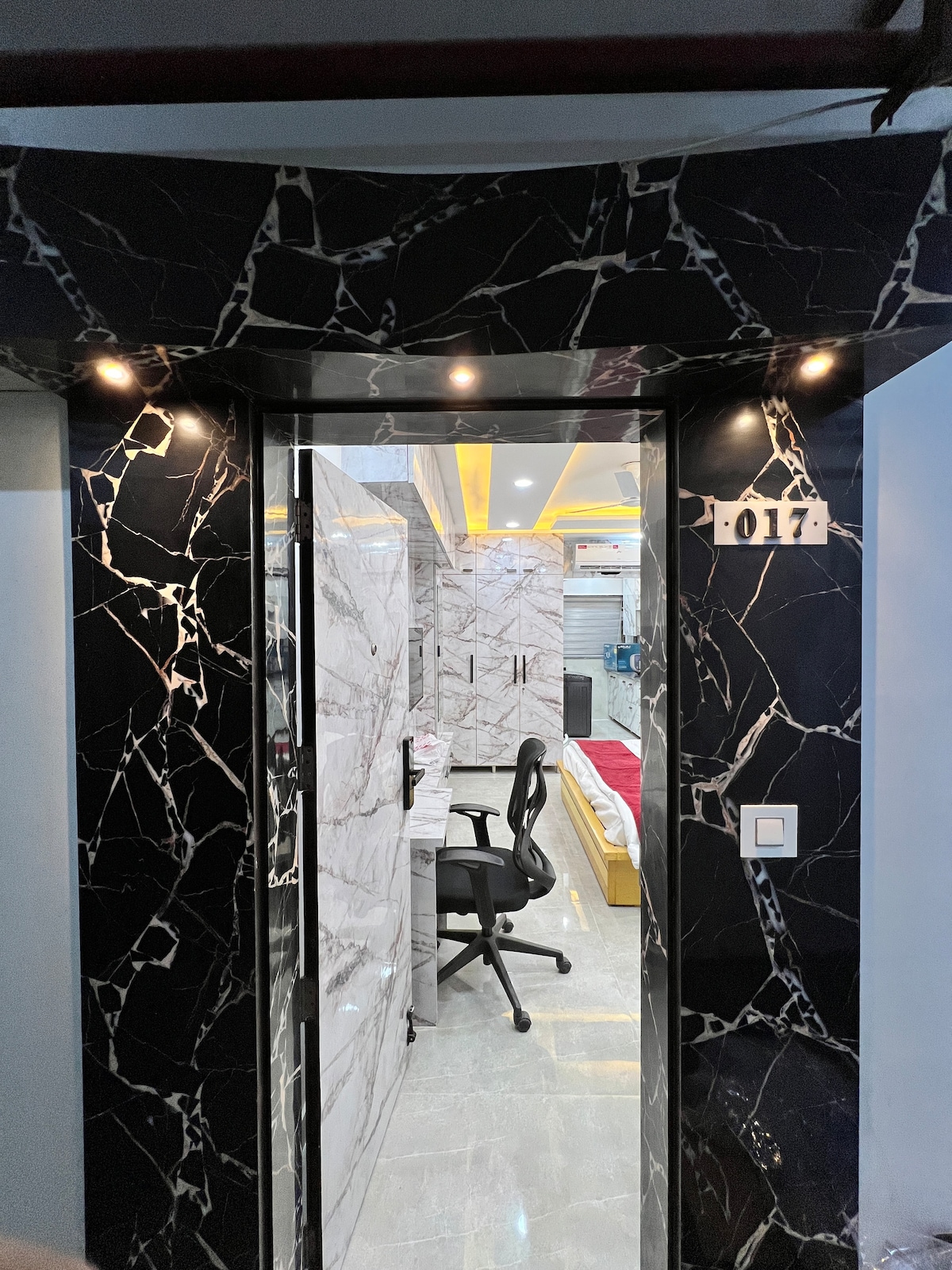 Novo zgrajena, v celoti opremljena 2 BHK (1 BHK + 1 dnevna soba ali 1 BHK) z balkonom, brezplačnim Wi-Fi-jem, brezplačnim parkiranjem, pogledom na park in sonce, razdelilnimi klimatskimi napravami, pralnim strojem, mikrovalovno pečico, sistemom RO - brezplačna mineralna voda je na voljo za pitje in kuhanje, hladilnik, modularna kuhinja, ultra sodobna kopalna oprema, likalnik, sodobne omare, krmilne omare, LED TV, pametna ključavnica za vrata.