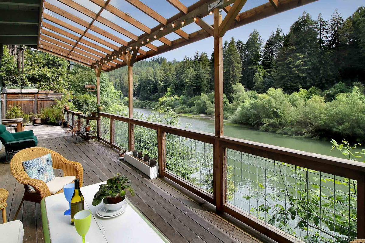 Občutite hladen morski vetrič, medtem ko občudujete razgled na ustje reke Ruske reke. Sprostite se v mirnem in elegantnem okolju. Vzemite svojo najljubšo pijačo in uživajte v lepoti kalifornijske obale. Le nekaj korakov stran od pacifiške avtoceste 1 in peš do reke ali kratke vožnje do plaže Goat Rock. Poleg tega vas loči le kratek sprehod po kavarni Aquatica Café. *** Pred rezervacijo preberite celoten opis vnosa ***