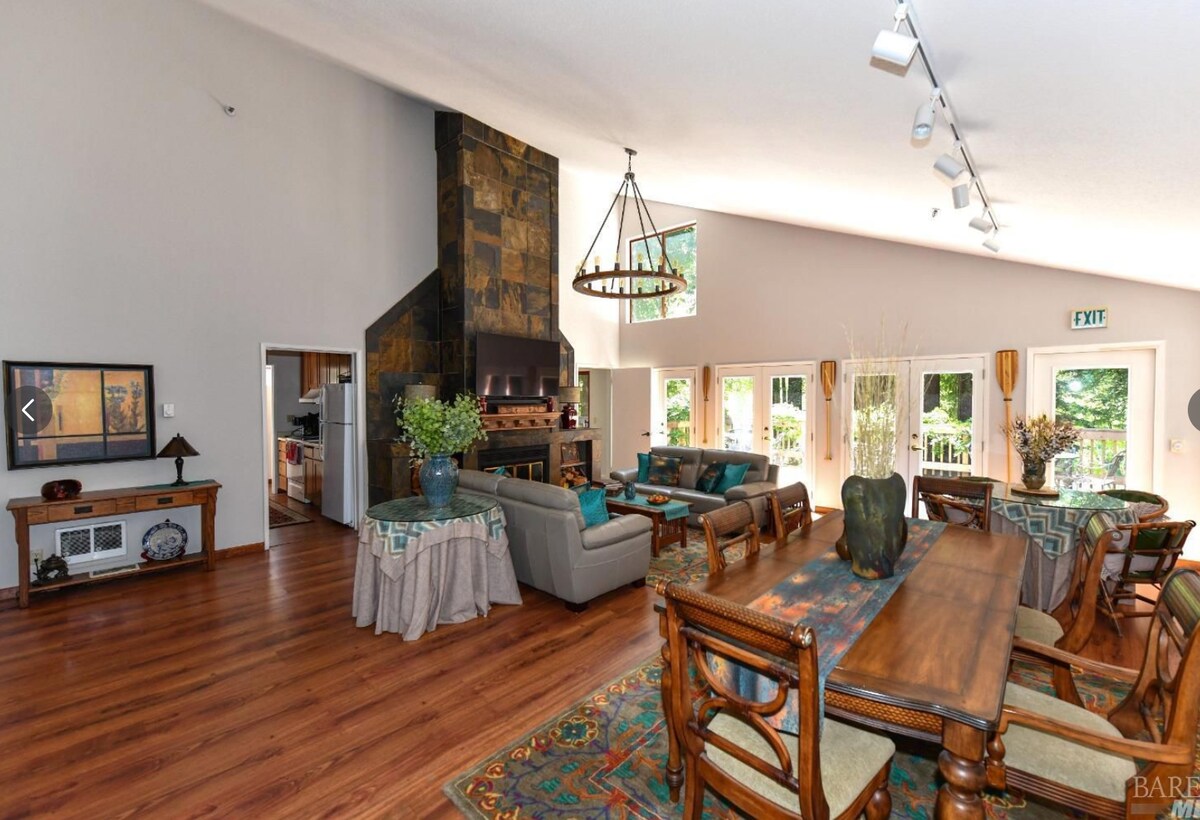 **Pred kratkim osveženo/ponovno opremljeno.** To hišo je arhitekt Don Jacobs poimenoval »The Ranch House«. Ta posodobljena koča iz sedemdesetih let je gozdni oddih s sodobno občutljivostjo. Hiša je obdana z sekvoje in ima 2 veliki terasi, 1 w/ propanski ognjišče z dovolj sedežev, drugo z masažno kadjo. Dnevna soba ima slikovna okna s pogledom na gozd in štedilnik na drva Morso. Gostom priporočamo, da uživajo v pohodniških poteh, bazenih in zunanji opremi. V hiši lahko udobno spijo 4 osebe in optični internet