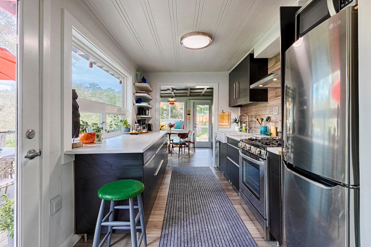 Sprostite se v tej edinstveni, sodobni hiški na deželi z masažno kadjo, ki se nahaja na bregovih ruske reke v zgodovinskem Duncans Mills. Srčno bivališče je sodoben slog sredine stoletja z obsežnimi terasami, bujnimi vrtovi, zunanjim prostorom in spokojno, vendar moderno notranjostjo, vključno z udobno dnevno sobo, sodobno kuhinjo, 2 spalnicama in 2 kopalnicama. Postavitev je dve ločeni postelji/kopalnici - ponujata popolno zasebnost za 2 para ali starše z otroki! Plavajte ob reki, se namakajte v masažni kadi ali pa se sprostite. Hišni ljubljenčki so dobrodošli - strošek 50 USD