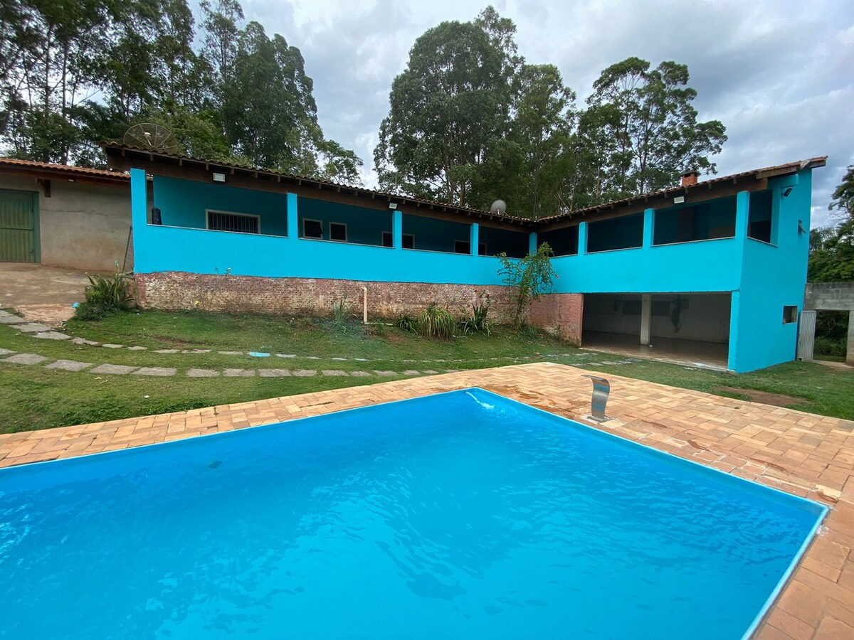 Pridite, uživajte in se sprostite na naši kmetiji z odlično strukturo: na voljo je 5 sob, 3 apartmaji. Igrišče za tenis na plaži in Futvôlei! Sončni bazen * Igrišče in nogometno igrišče Prostor z žarom, pečico na drva, štedilnikom na drva, biljardno mizo, kaminom in kavčem s televizijo * Ogrevanje bazena je odvisno od vremenskih razmer