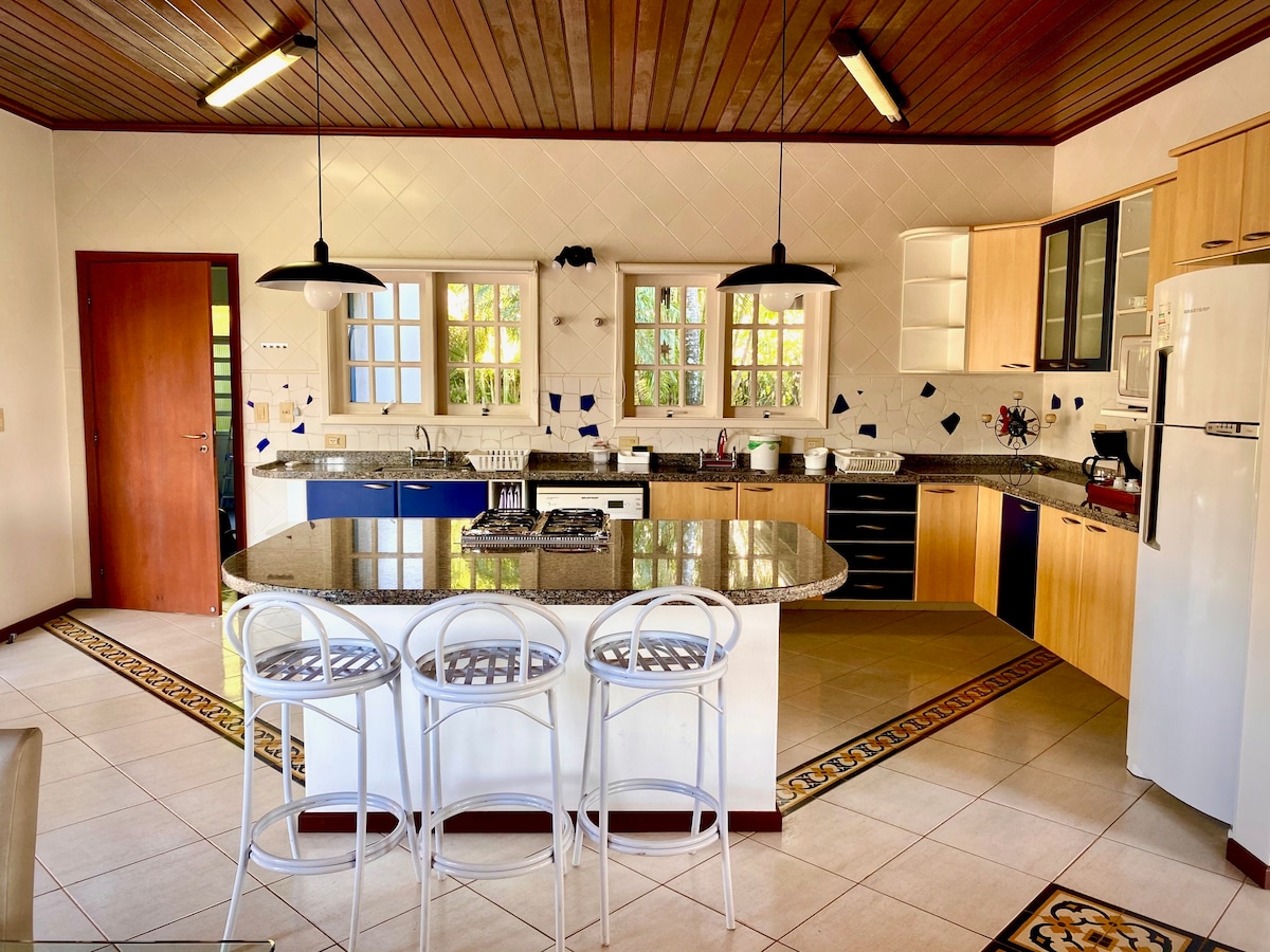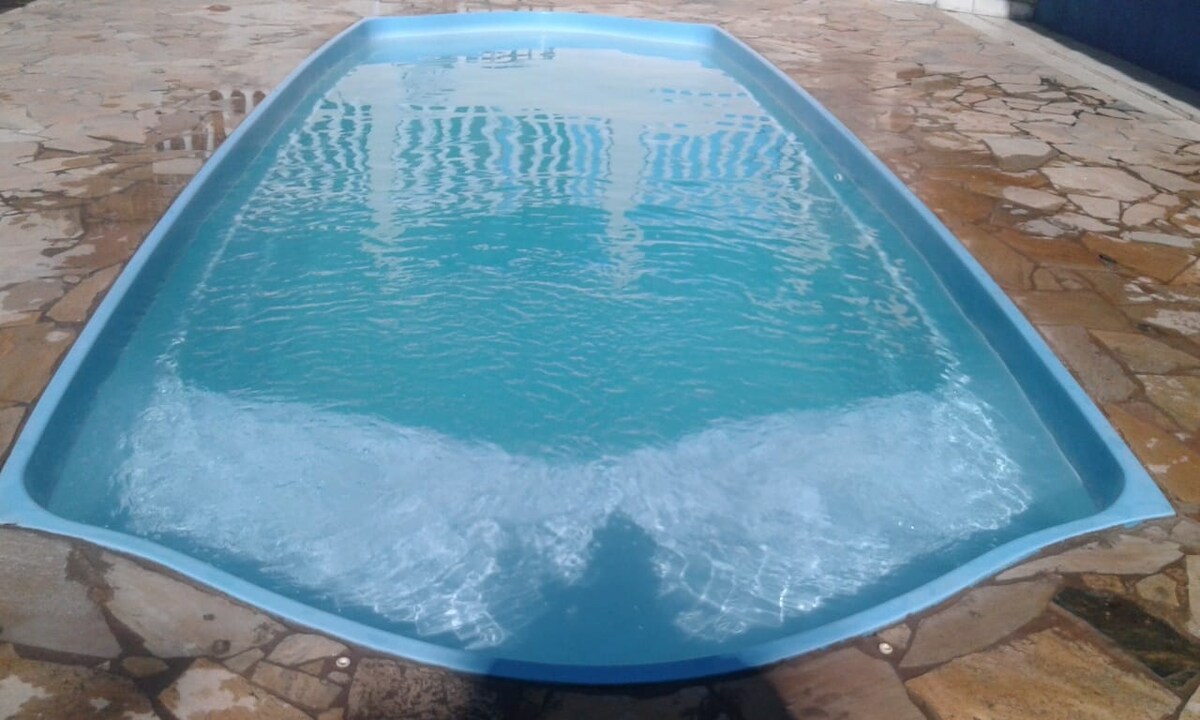 Excelente Chácara c 2.800 metros quadrados de muito verde e árvores frutíferas, horta, piscina c uma enorme área p churrasco c forno e fogão a lenha, salão de jogos c uma excelente mesa de bilhar, 100metros quadrados de grama sintética ao lado do espaço da piscina e um deck louge p ter uma vista privilegiada, casa c 7 quartos todos c cama de casal e cama de solteiro, acomoda 25 pessoas tranquilamente,
