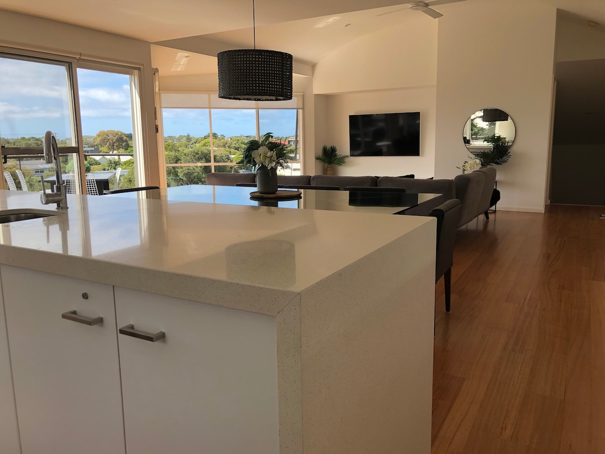 The moment you walk into 'Sorrento Luxe', you will wish you booked longer. A modern home with a large open plan living area, home cinema room and solar heated pool. A chefs Kitchen with all the modern convenience's opens to a large living room. The covered alfresco entertaining area with BBQ allows you to enjoy your surrounds all year long. Situated moments from the main street of Sorrento, this spectacular three-bedroom home has it all. There are many memories to be made in our beautiful home.