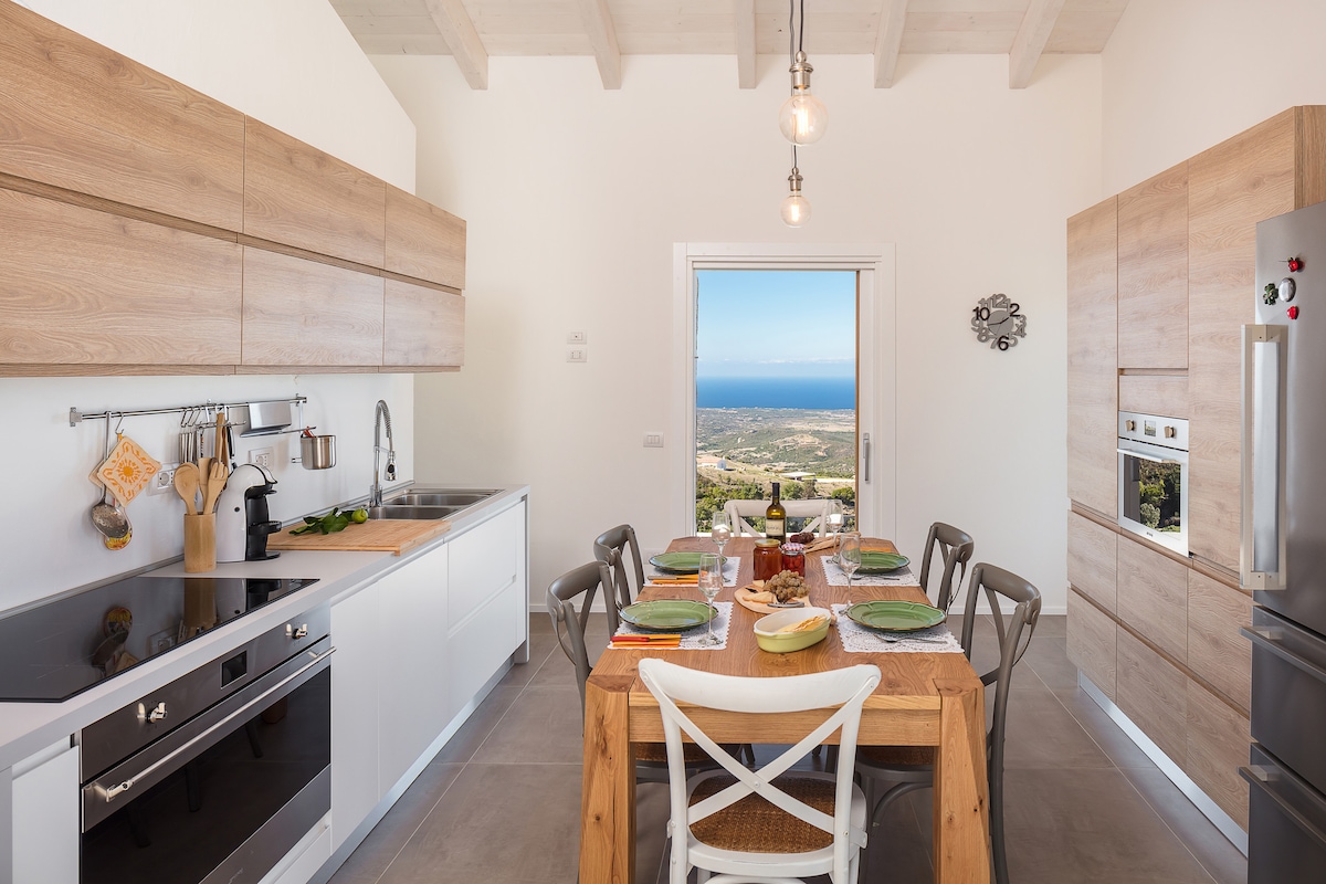 Na eni ravni lahko sprejme do 6 oseb. Sestavljen je iz dveh velikih spalnic, svetlega bivalnega prostora in profesionalne kuhinje. Kopalnica z dvema udobnima umivalnikoma in zelo veliko prho z dvema prhama. Veliki zunanji prostori, opremljeni s kuhinjo z žarom in pečico na drva, drugo zunanjo kopalnico s prho, verando z mizo s pogledom na morje, prostori za sprostitev, telovadnico, 2 bazena, so idealna destinacija za tiste, ki želijo živeti in vdihniti podeželje ter zasebnost v največji svobodi.