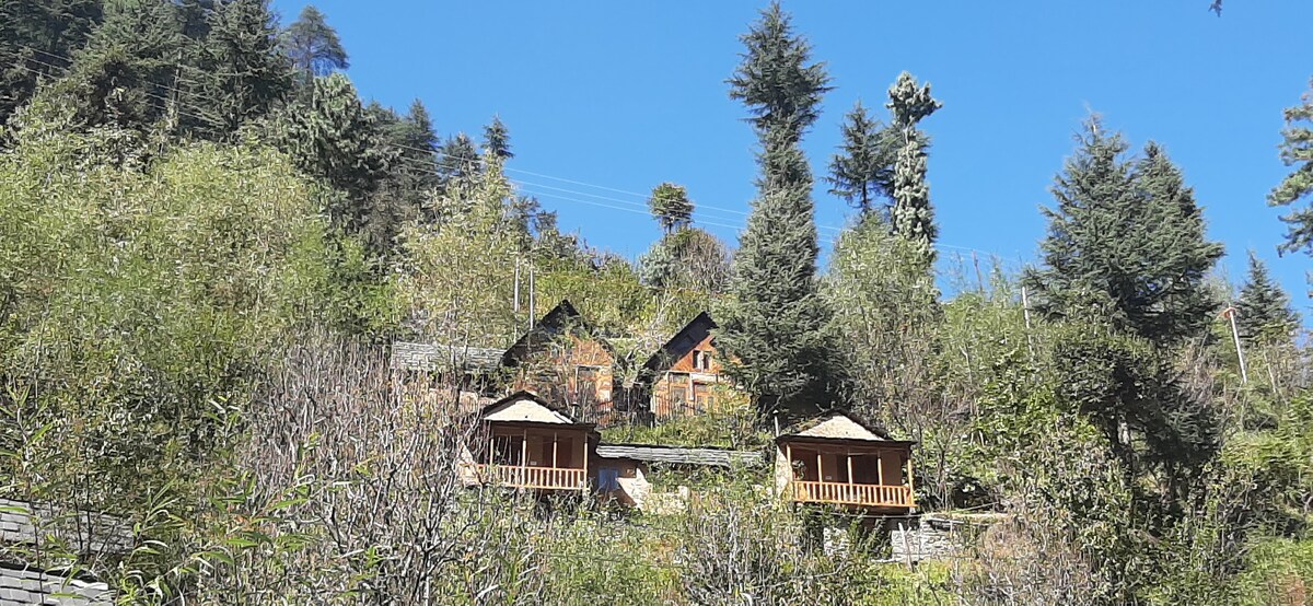 Udobno zemeljsko prenočišče z rustikalnim starinskim vzdušjem. Kraj za doživetje raziskovanja, ponovne povezave z naravo in počasnega življenja. Naše zemeljsko prenočišče se nahaja na vrhu gore v dolini Jibhi in med gostim gozdom Deodar, ki ponuja panoramski razgled na gorovje Pir-Panjal in Dhauladhar. S čudovito pokrajino, ki se spreminja z vsako sezono. Naša hiška na deželi se nahaja v čudoviti vasici LUSHAL in je oddaljena od množice in vrveža običajnega turizma.