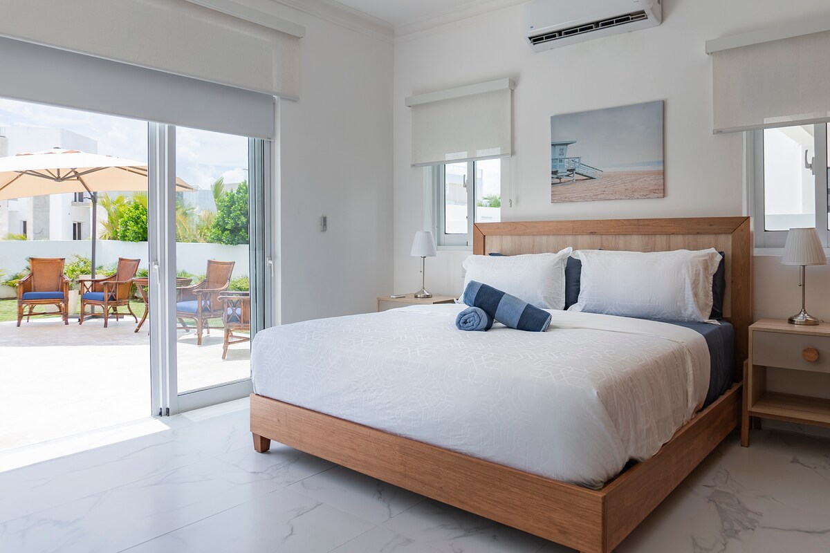 Prepustite se tropskemu razkošju v tej vili s 5 spalnicami in 5,5 kopalnicami v vasi Sosúa Ocean Village. Z zasebnim bazenom, kuharsko kuhinjo, dnevnim čiščenjem in dostopom do opreme v slogu letovišča, vključno z vodnim parkom Sante Fe, klubom na plaži, telovadnico in restavracijami - to je popoln oddih za družine, skupine ali dolgotrajna bivanja. Uživajte v oceanskem vetriču, sodobnem oblikovanju in polnem udobju le nekaj minut stran od plaž, nočnega življenja, le 15 minut stran od letališča POP.