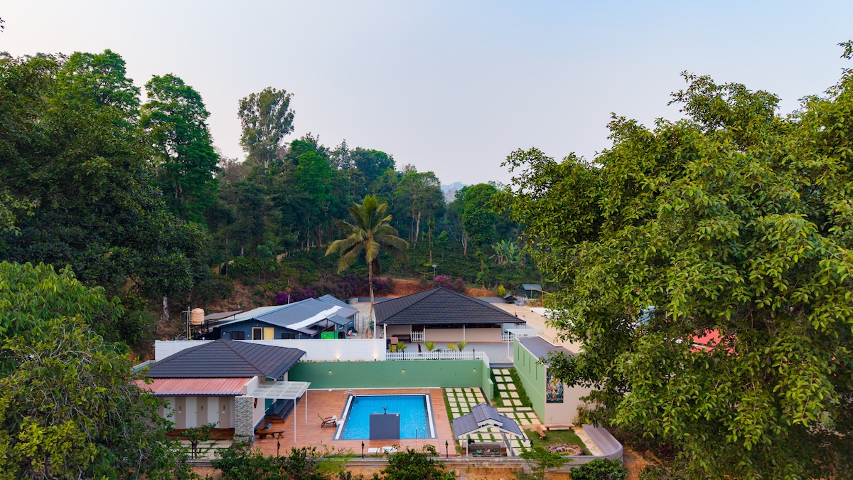Three-bedroom pool villa in a plantation in Coorg