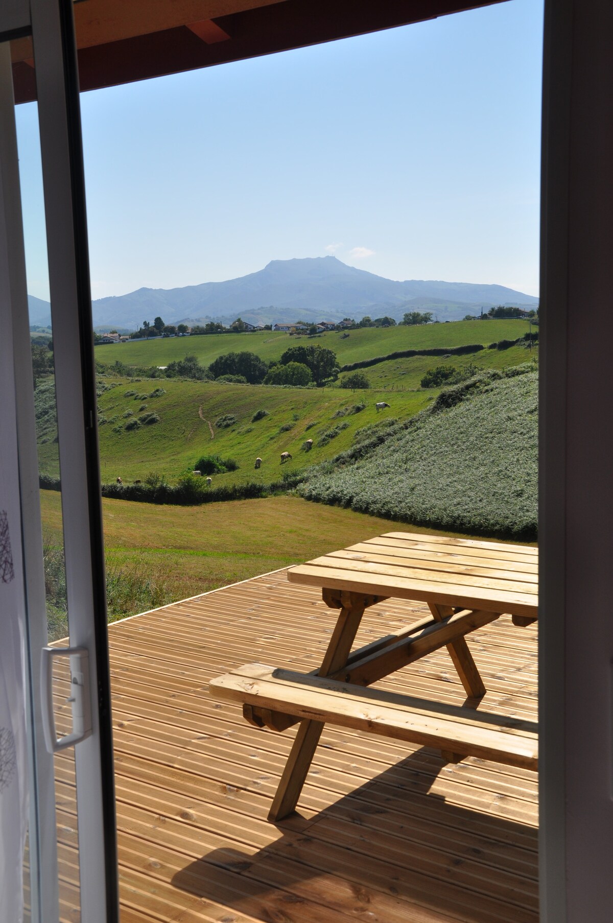 Počitniški najem 2 osebi 28 m²(možnost, da pridete z otrokom, v bližini postelje) , izpostavljeni južni in zahodni , velika terasa, gorski razgled, tišina, 200 m od vasi Itxassou, ki ima veliko trgovin (pekarna, mesnica, restavracije, bari...). Vas se nahaja ob vznožju gora in 30 minut od plaž. Za julij in avgust, najem od sobote do sobote Sem športni izobraževalec in nudim pohodništvo , nordijsko hojo, začetek poti z prednostno ceno za najemnike hišk na deželi.