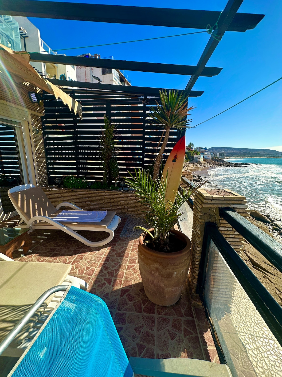 charming apartment offers the perfect blend of tranquility and unbeatable ocean views and a relaxed atmosphere. Whether you’re here to surf, or unwind, you’ll find the perfect spot. Enjoy stunning sunsets, friendly vibes, and easy access to the beach . We offer managed trips for surfing, surfskating, quad biking, horseback riding, and sand dune adventures with sandsurfing, camel rides, and dinners under the stars. Perfect for solo travelers or groups looking to experience Morocco’s coast!
